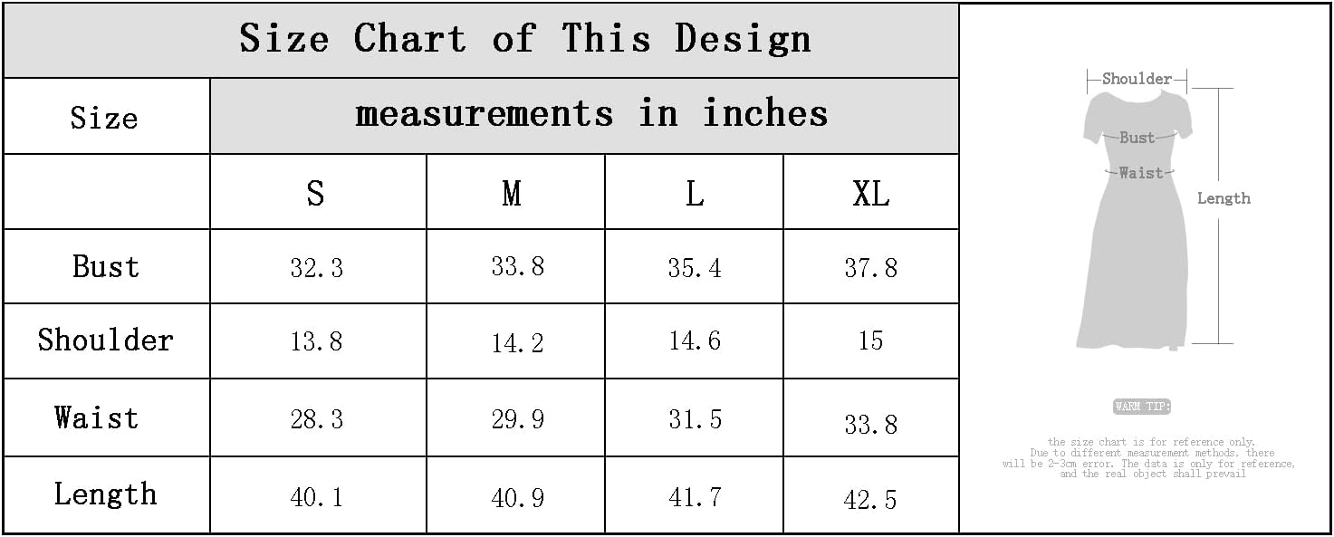 S:Bust:32.3″—Shoulder:13.8″—Waist:28.3″—Length:40.1″