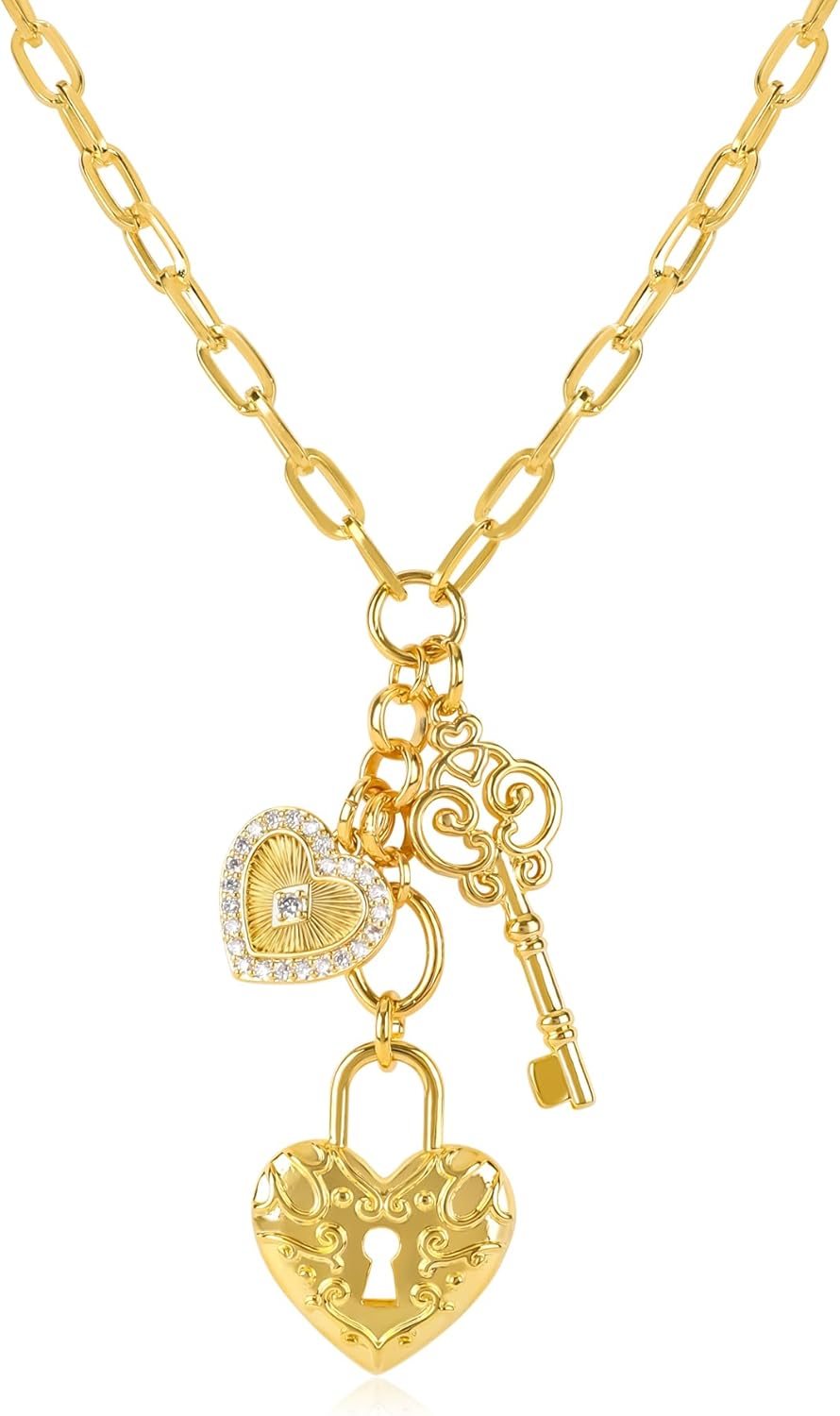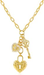 Be the first to review “Vintage Gold Lock and Key Pendant Necklace for Women 14K Gold Plated Cubic Zirconia Heart Charm Lock Necklace Adjustable Paperclip Link Chain Retro Pattern Key Necklace Trendy Jewelry Gift for Women” Cancel reply