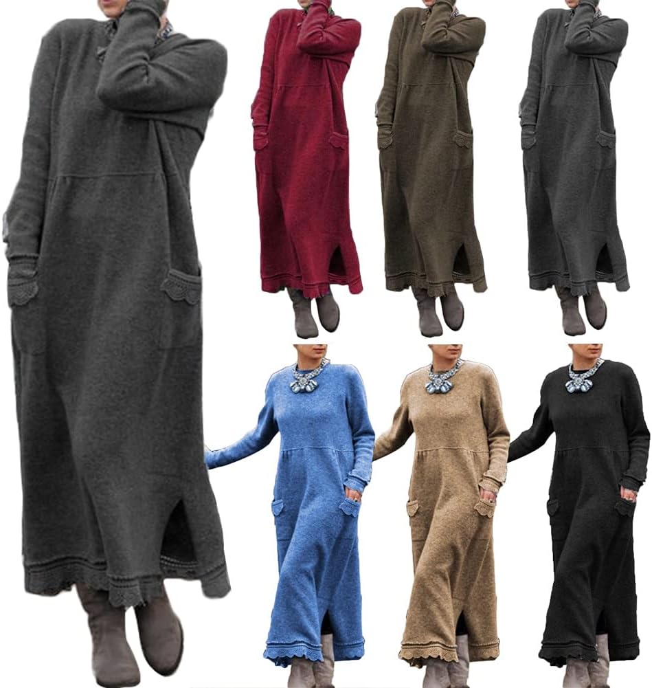 Be the first to review “Vintage Sweater Dress Women Autumn Winter Long Sleeve Lacework Hem fall Lady Plus Size Dresses Pockets Knit Maxi Dress” Cancel reply