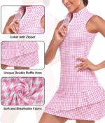 Viracy Tennis Dress for Women Sleeveless Golf Dresses with Shorts and Pockets Ruffle Zip Up Stand Collar Golf Outfits