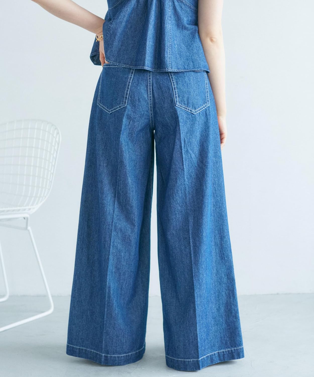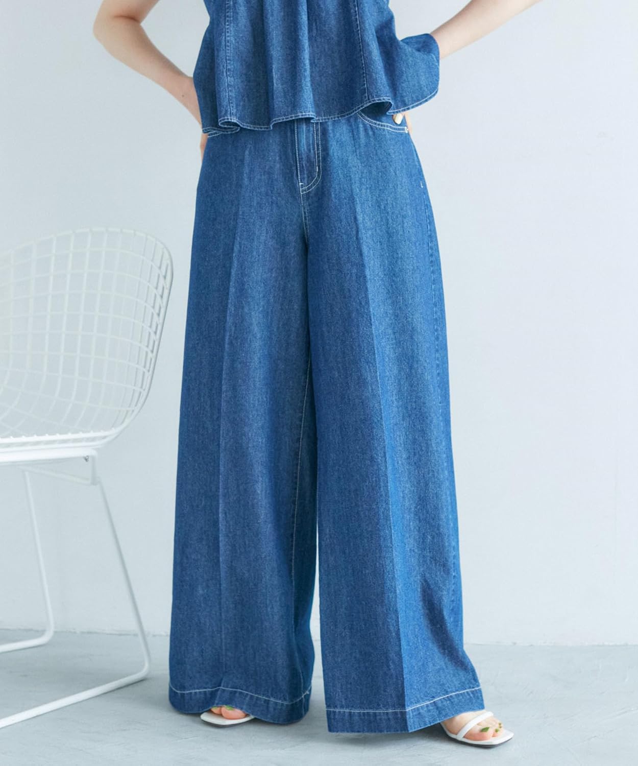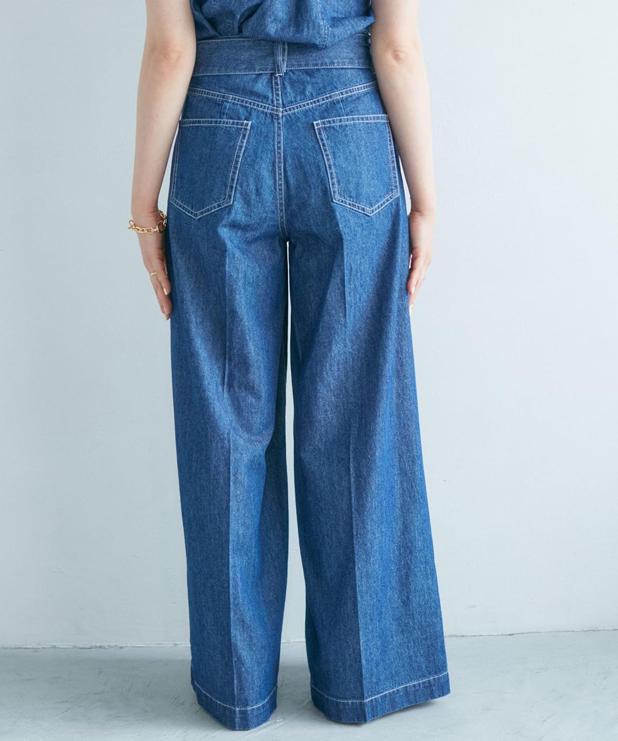Category: Jeans & Pants Tags: VIS, ジーンズ, セットアップ対応ベルト付きセンタープレスワイドデニムパンツ洗える, レディース