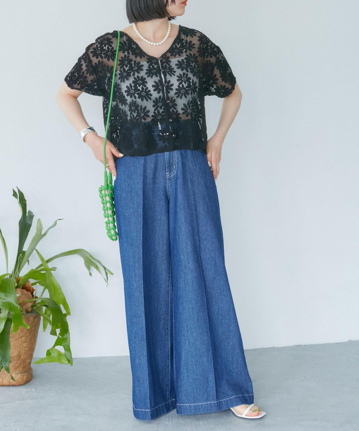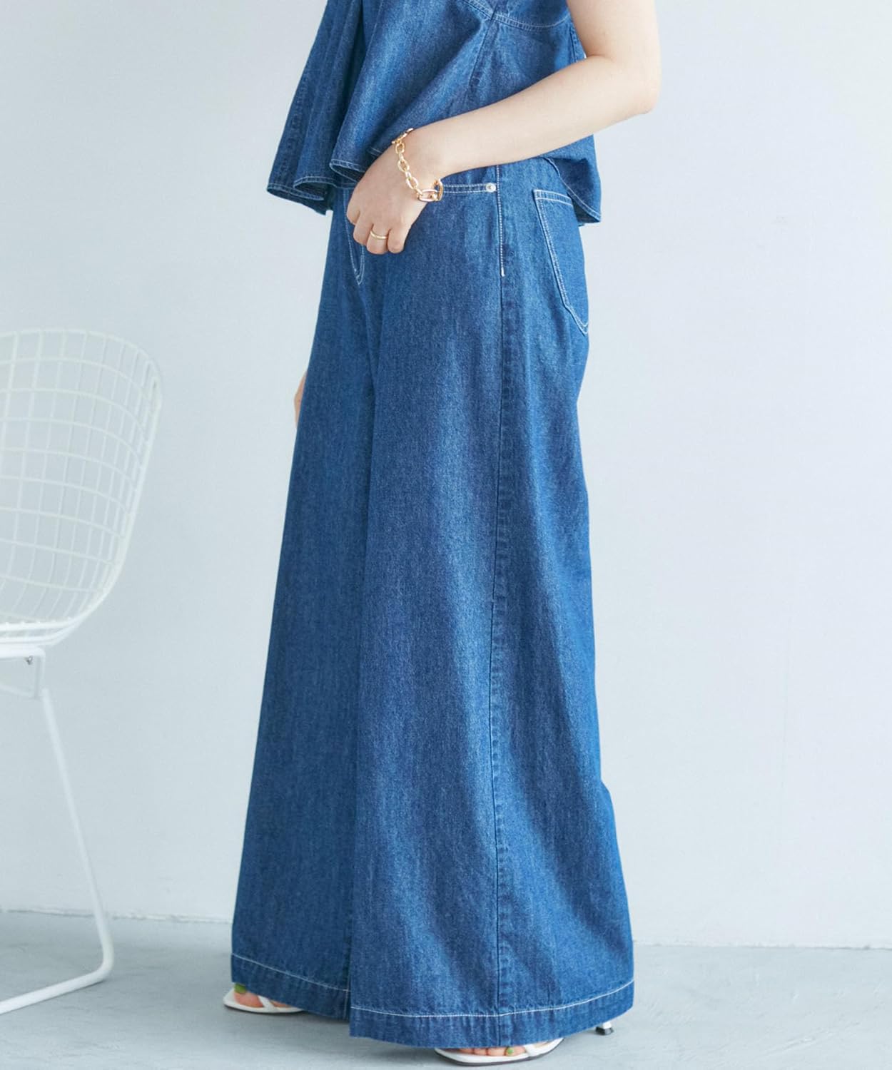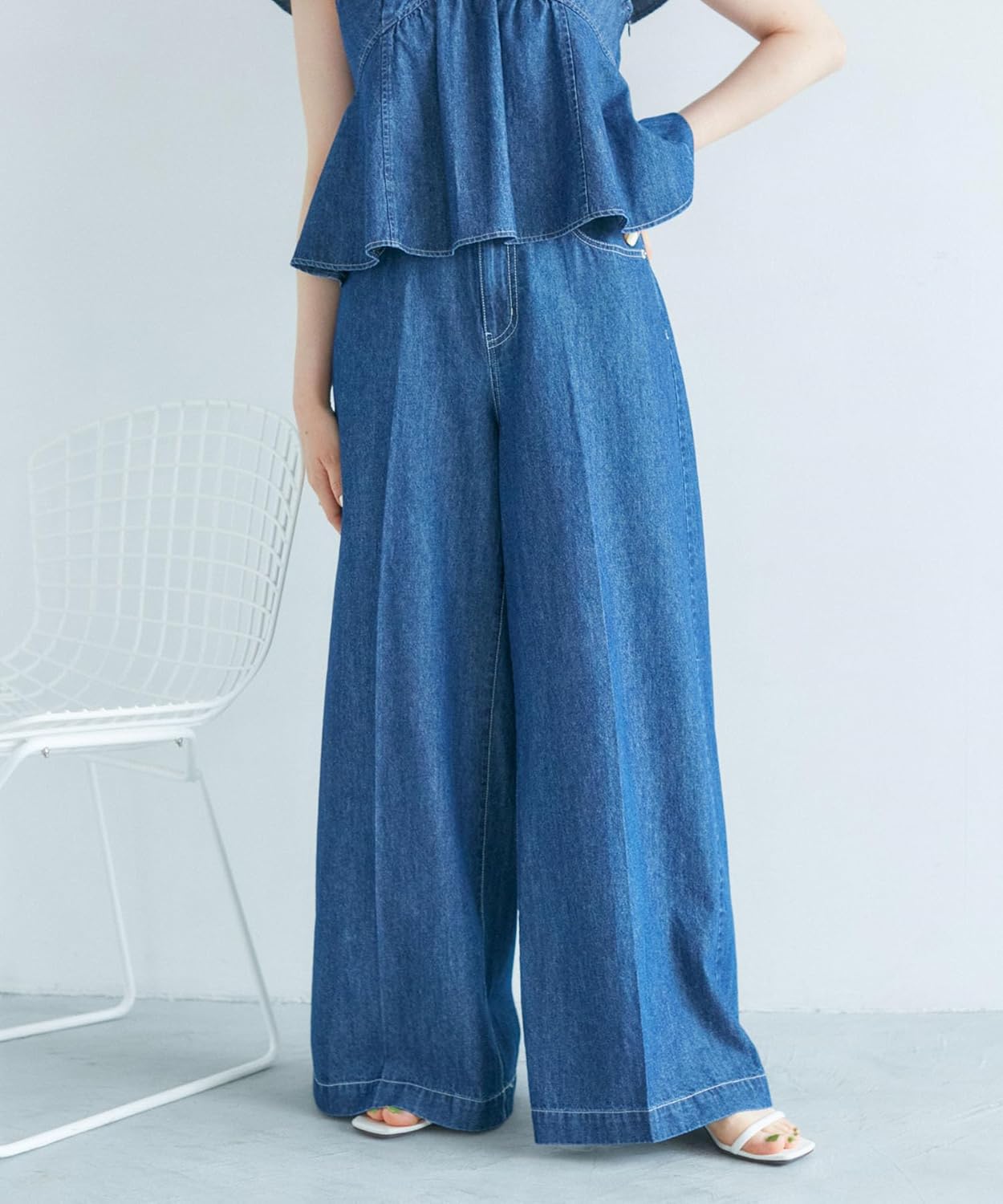 Category: Jeans & Pants Tags: VIS, ジーンズ, セットアップ対応ベルト付きセンタープレスワイドデニムパンツ洗える, レディース
