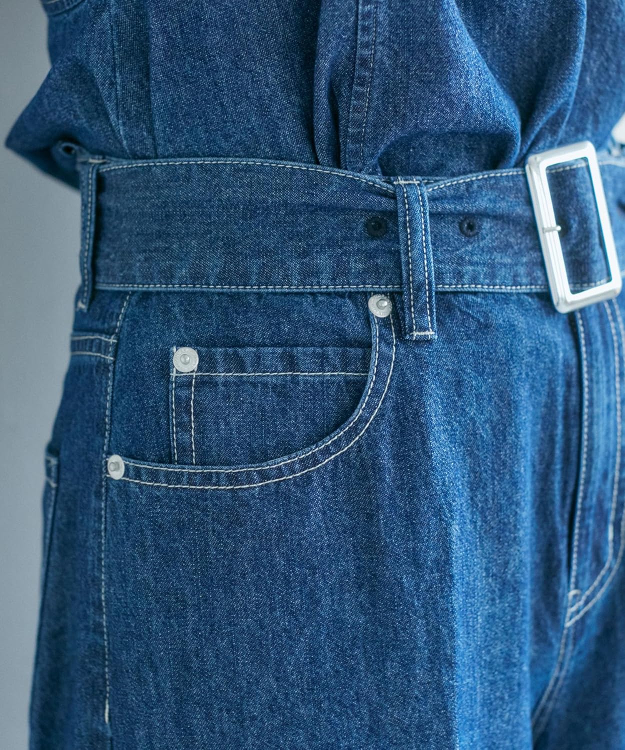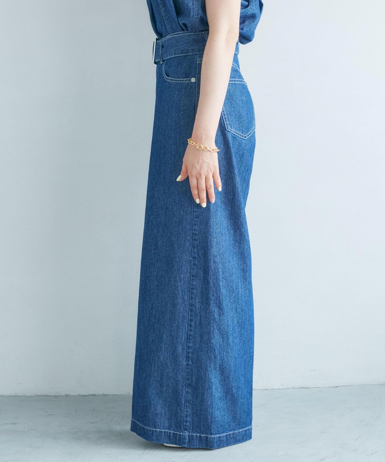 [VIS] ジーンズ 【セットアップ対応】ベルト付きセンタープレスワイドデニムパンツ【洗える】 レディース