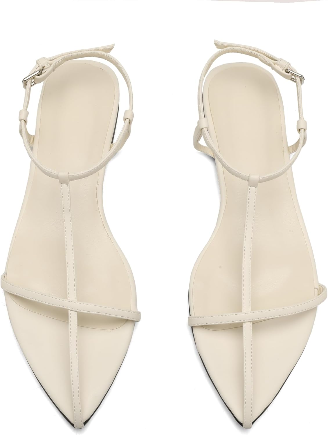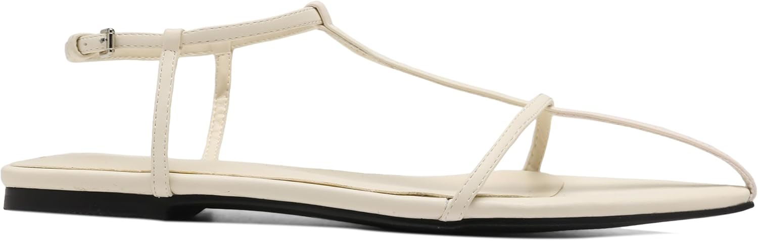 Home Shoes & Footwear Flats & Sandals VorisVina Black Flat Sandals for Women Adjustable Metallic Buckle Ankle Strap Slide Sandals Comfortable Pointed Open Toe Slip on Sandal