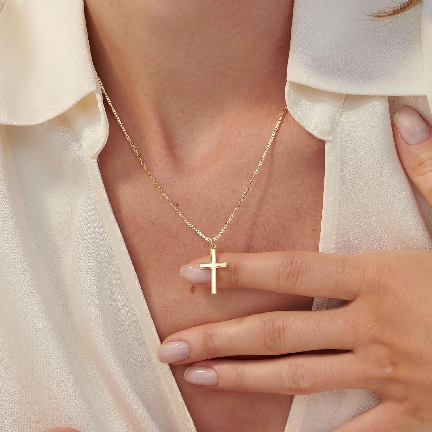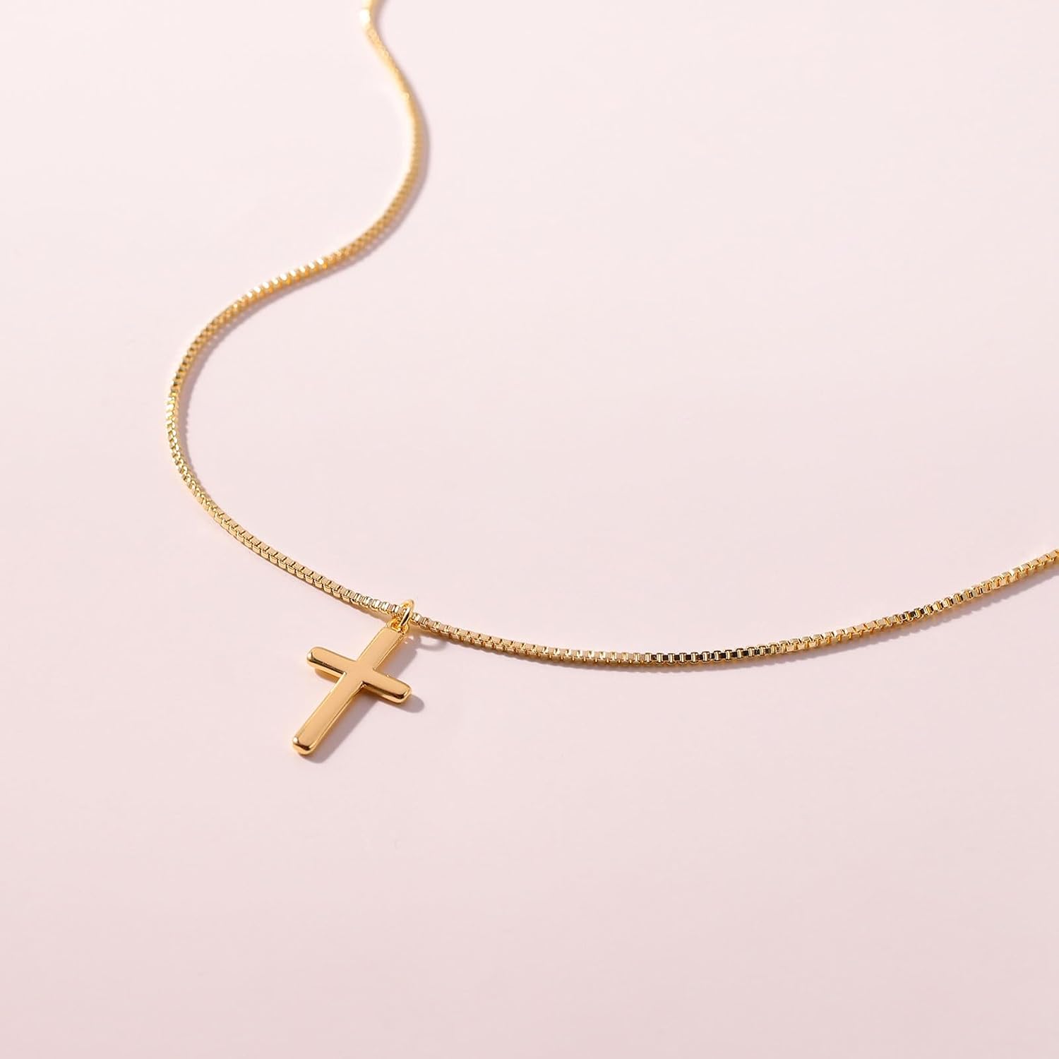 VRIUA Cross Necklace for Women 14K Gold Plated Dainty Gold Cross Necklace Simple Small Cross Necklace Box Chain Cross Pendant Necklace Everyday for Women