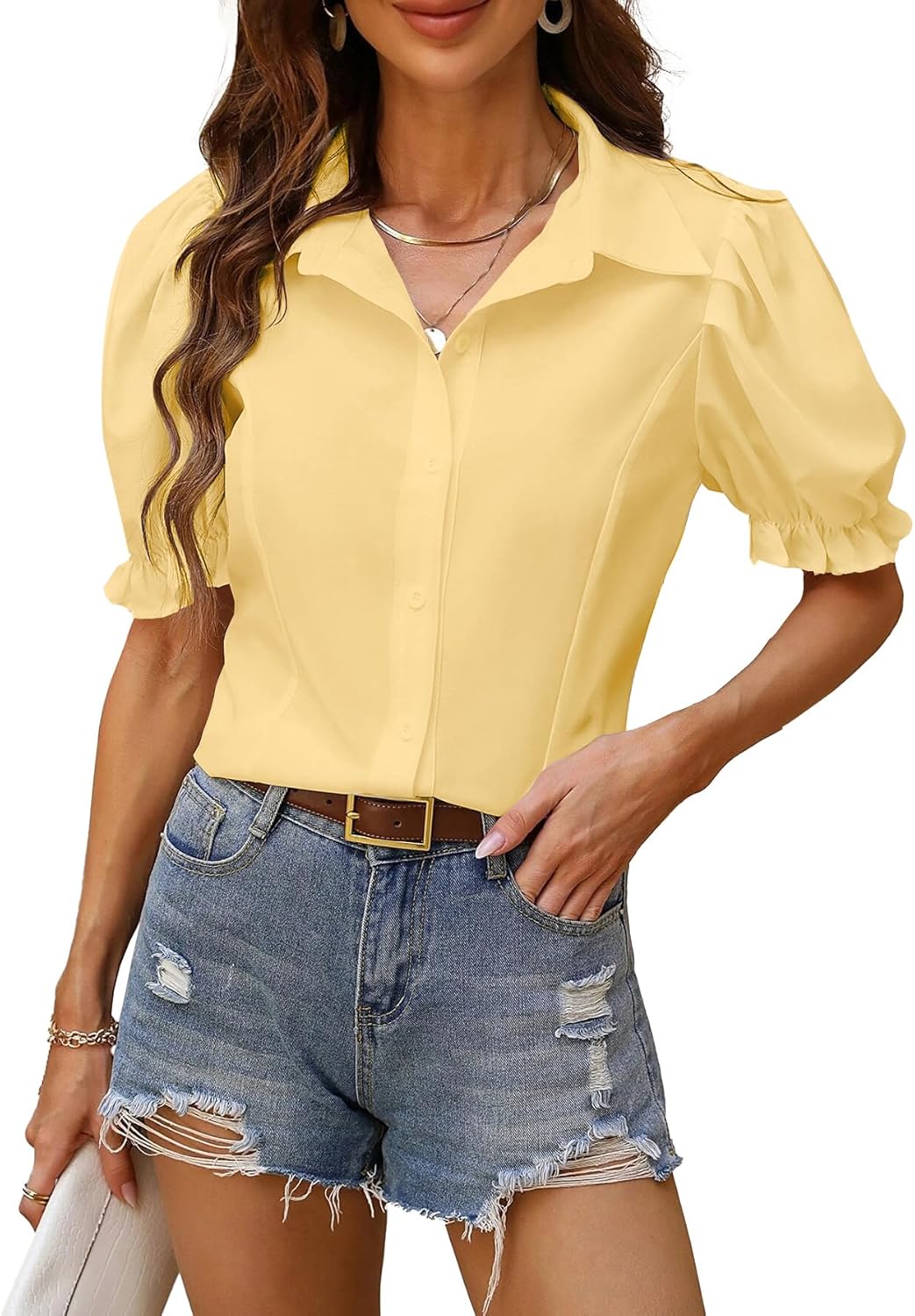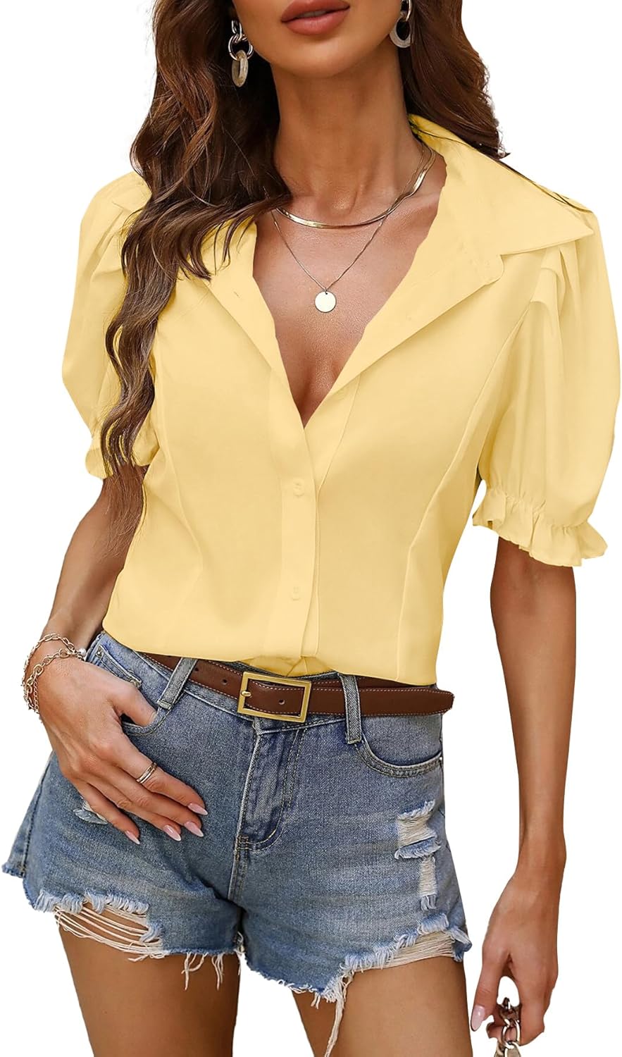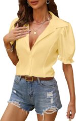 Be the first to review “Vrtige Women’s Button Down Collar V Neck Ruffle Puff Short Sleeve Blouse Shirt Top” Cancel reply
