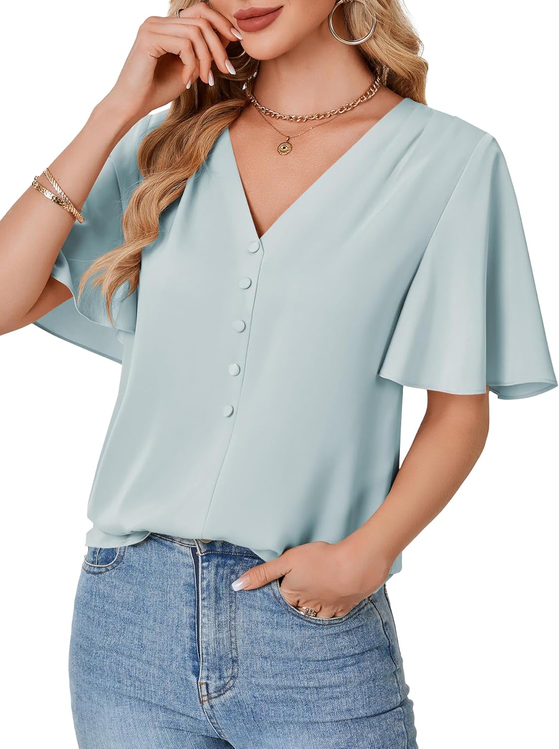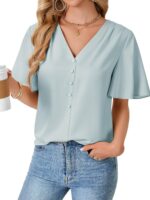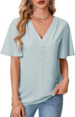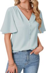 Price: (as of – Details) Lotusmile Womens Dressy Chiffon Blouses Summer Puff Petal Short Sleeve Shirts V Neck Casual Work