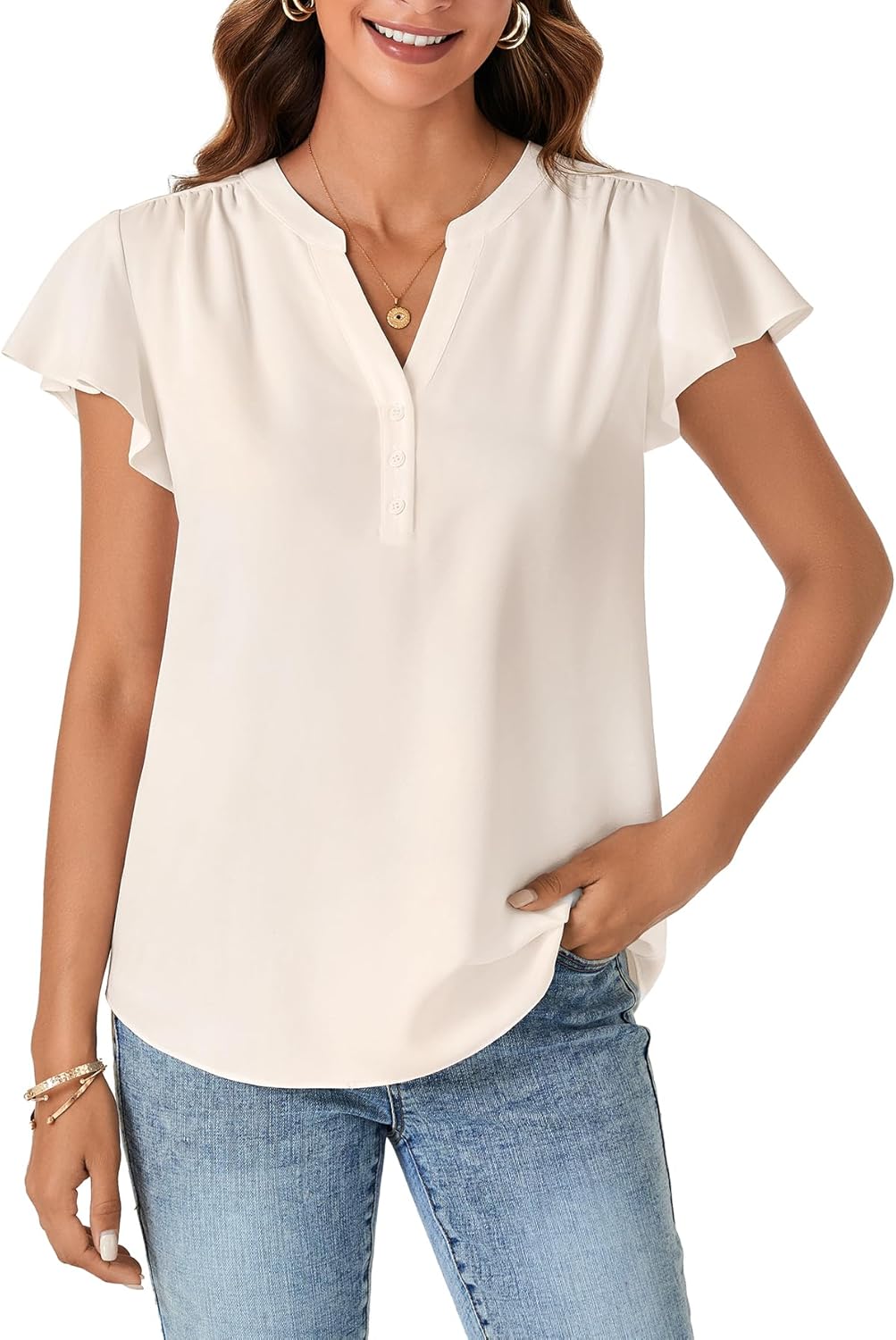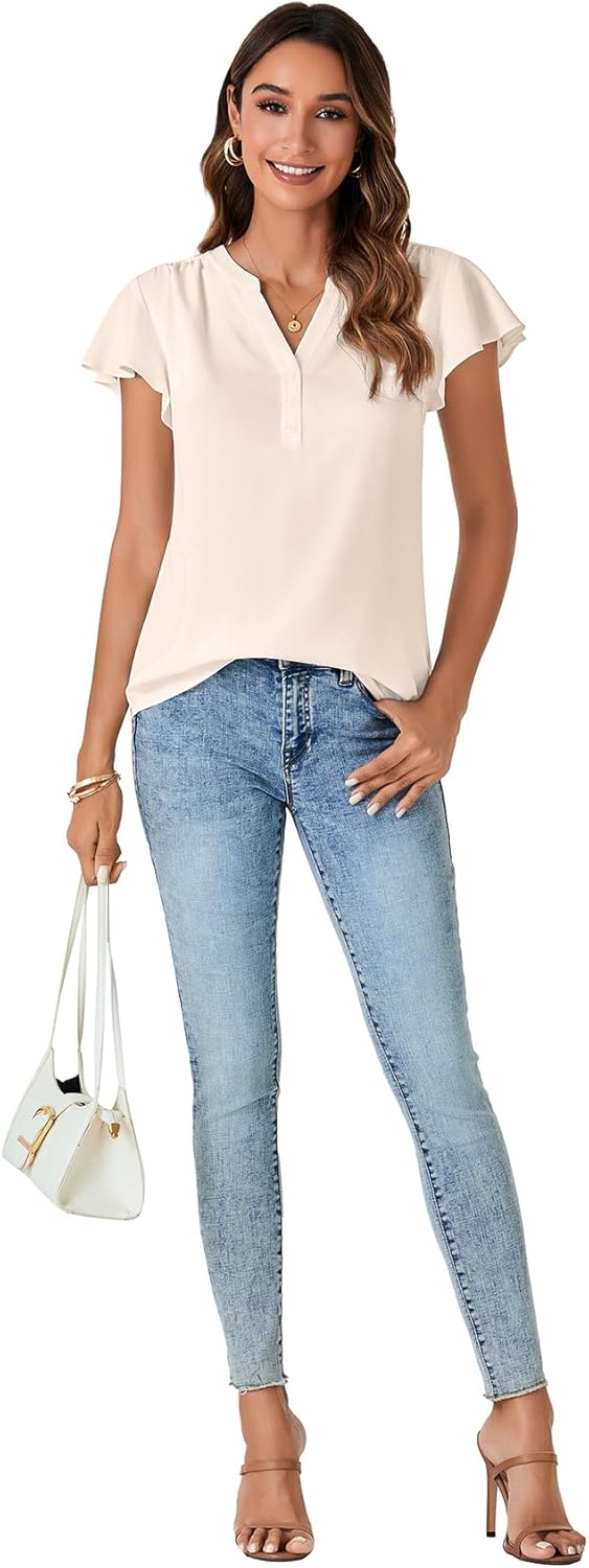 Be the first to review “Vrtige Women’s V Neck Flowy Ruffle Short Sleeve Shirt Business Button Tunic Top Blouse” Cancel reply