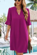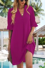 -Deep v neck, Pleated Hem,Cute sundress, Loose Fit, Casual Tunic dress.solid color, ruffle, simple and plain,can be easily dress up and dress down,elegant which is suitable for any occasion, Party Dress, Evening Dress, casual loose classic Homecoming Party Line Dress.