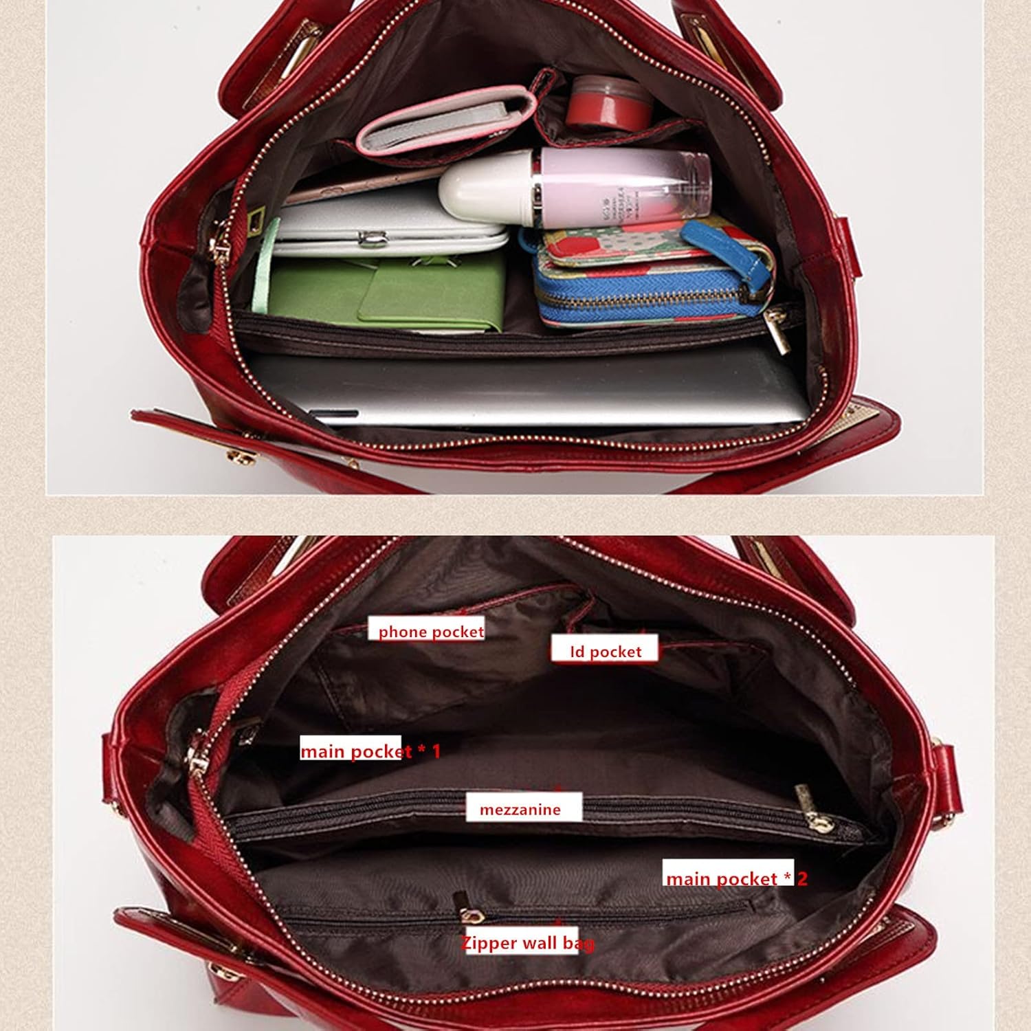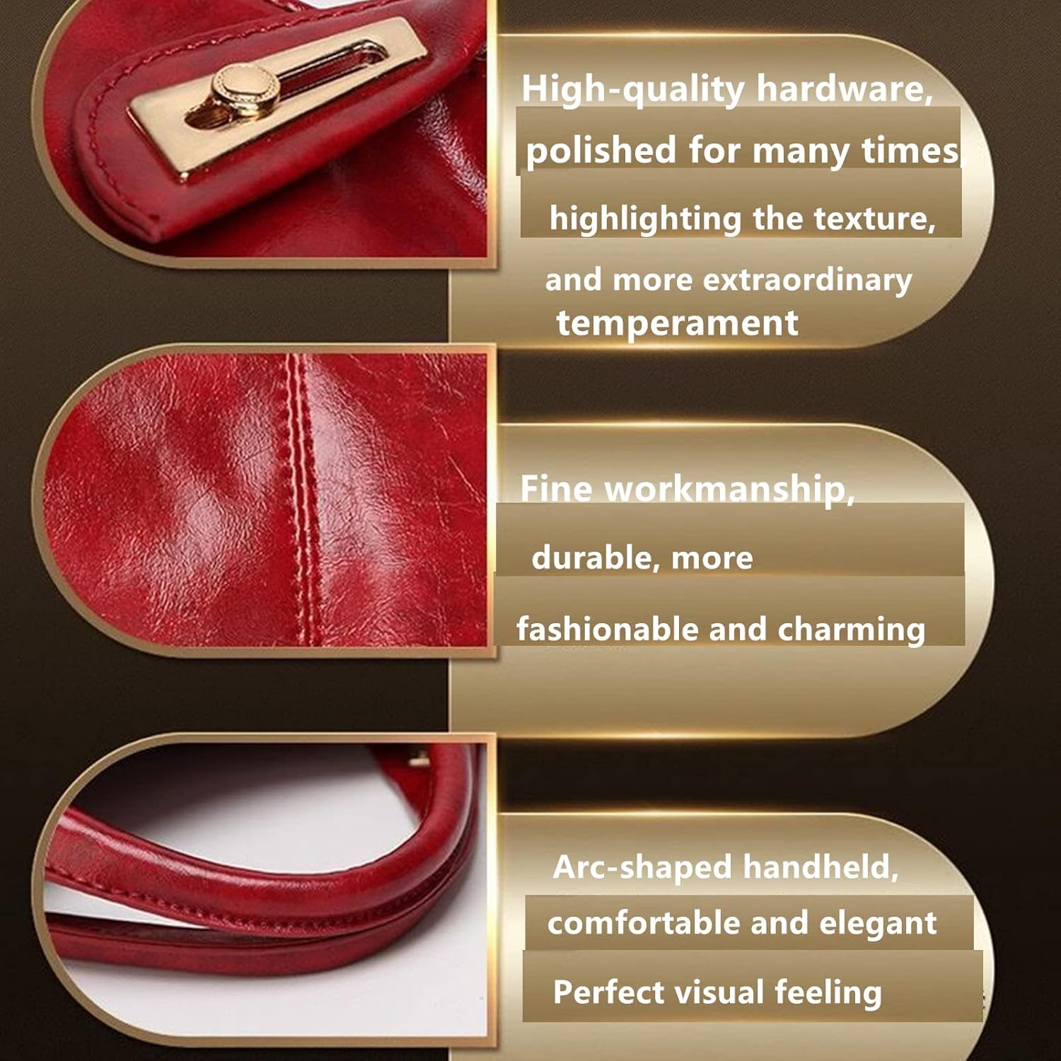 【Material】: high-quality oil wax leather, waterproof and wear-resistant. Unique hardware plate buckle bag even, beautiful, convenient and practical. Four hardware rivets at the bottom to make your bag more reliable.