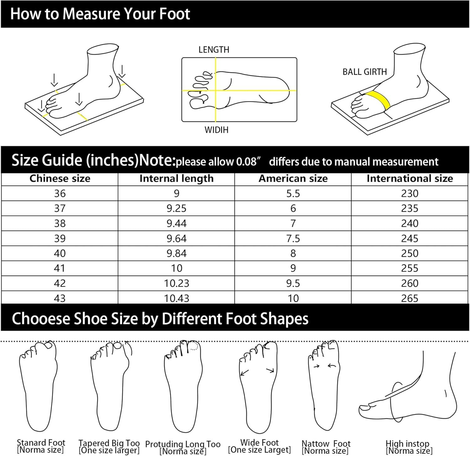 US 5.5=Asia 36=Heel to Toe(cm) 23=Foot length(9.05 inch)