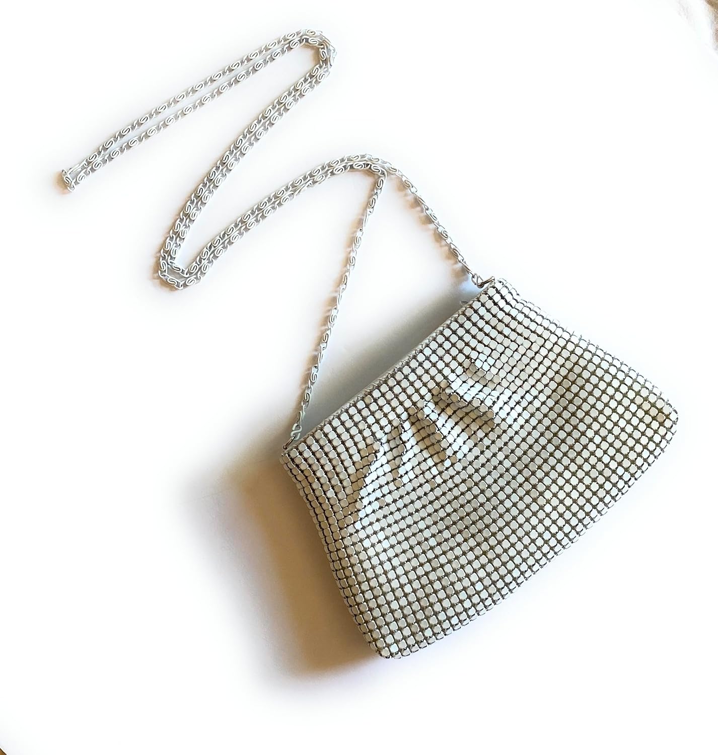 This Mini can fit a small cell phone with width up to 2.9 inch and length up to 5.9 inch, such as Iphone 7/8/X/XS/XR/11/11Pro/SE/12/13/14 and so on Carry your phone in style with this Metal Mesh Cross-Body Shoulder Strap Mini Evening Purse. Perfect for casual or evening occasions, this bag has a minimalist and retro style that will enhance any outfit. Lightweight: This bag is designed to be lightweight, making it easy to carry your essentials wherever you go. Metallic Material: Made with a metallic material, this bag has a unique and stylish look that will make you stand out from the crowd. Zipper Closure: The magnetic closure of this bag ensures that your belongings are secure at all times. Chain Strap:The chain strap adds an elegant touch to the overall look of the bag while providing durability for everyday use. This mini purse is perfect for carrying your cell phone while keeping it safe from scratches or damage. Its care instructions include dry cleaning only so you can keep its shine intact.