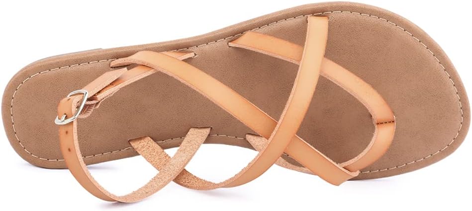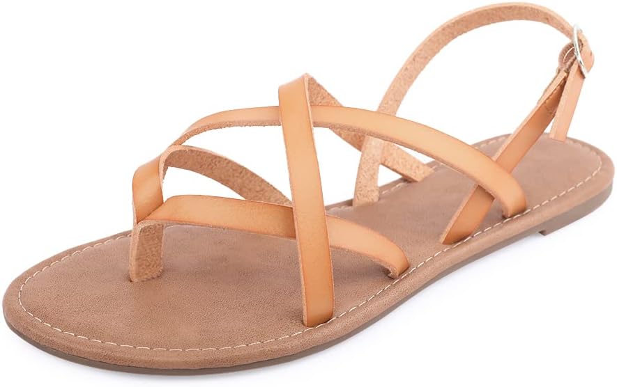 FITORY Women’s Slide Sandals Flat Toe Ring Thongs with Cross Strap for Summer Size