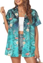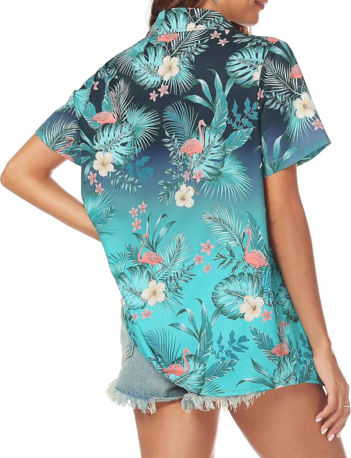 Womens Hawaiian Shirt Beach Button Down Shirts Tropical Hawaii Luau Casual Vacation Short Sleeve Blouse Tops