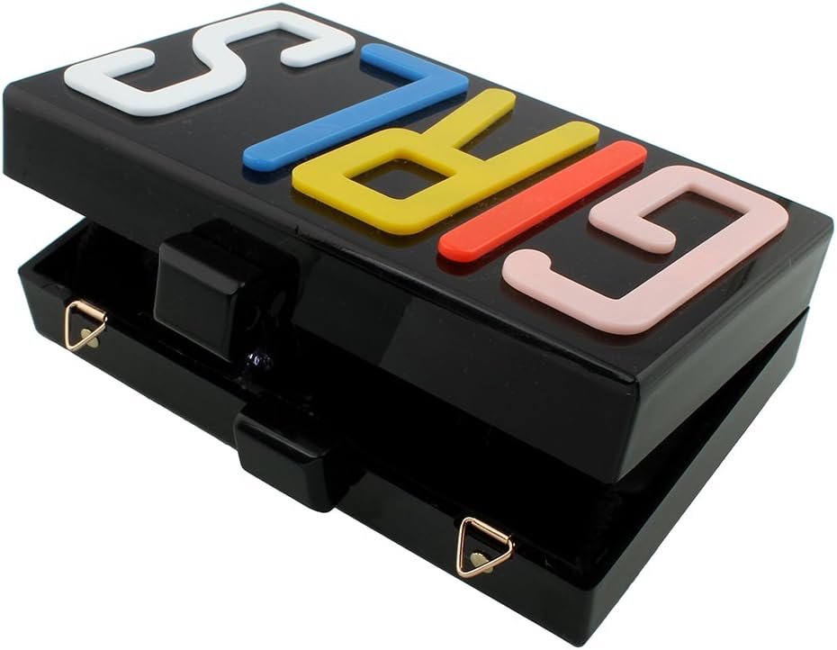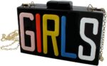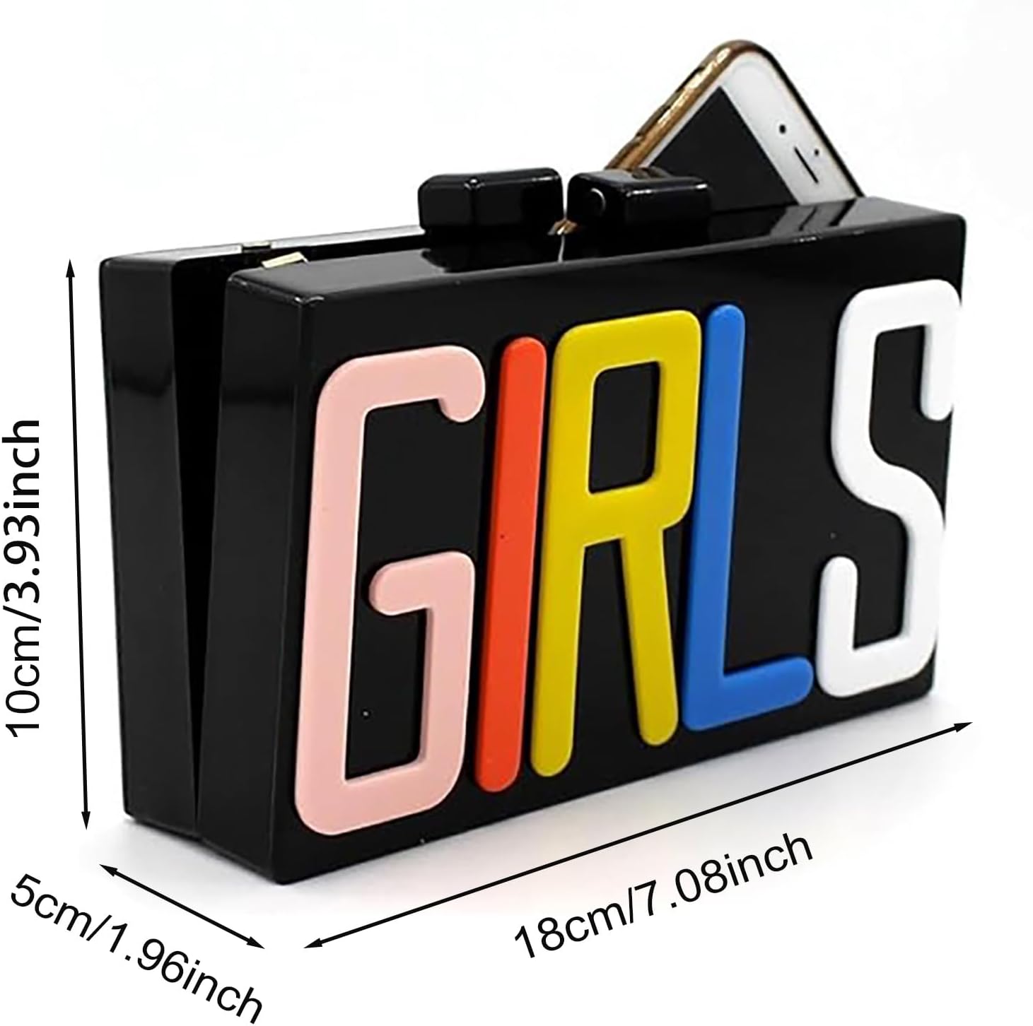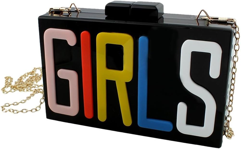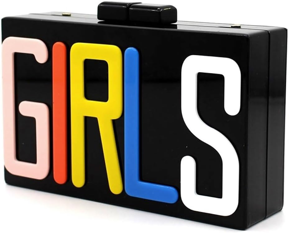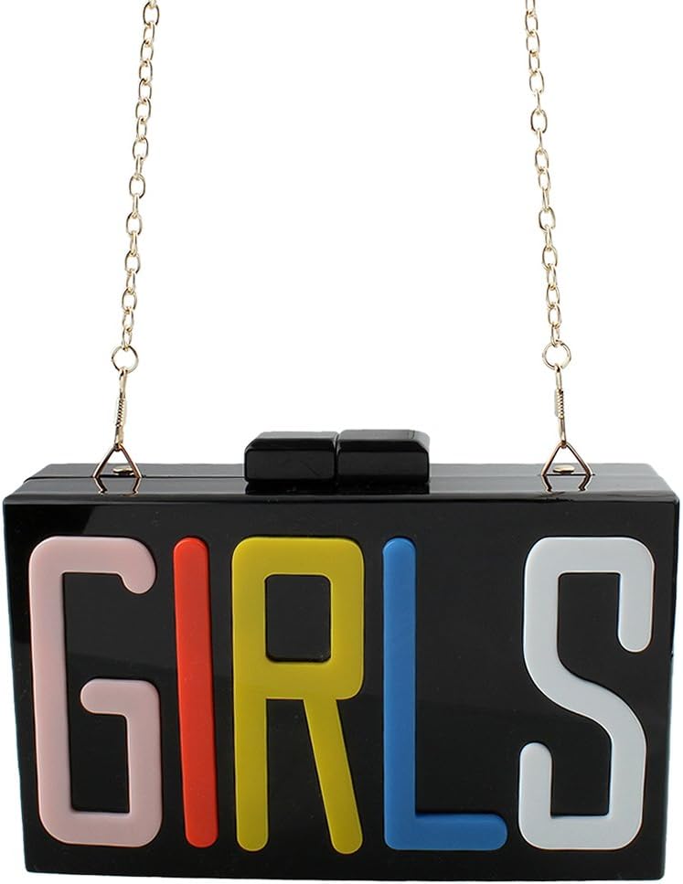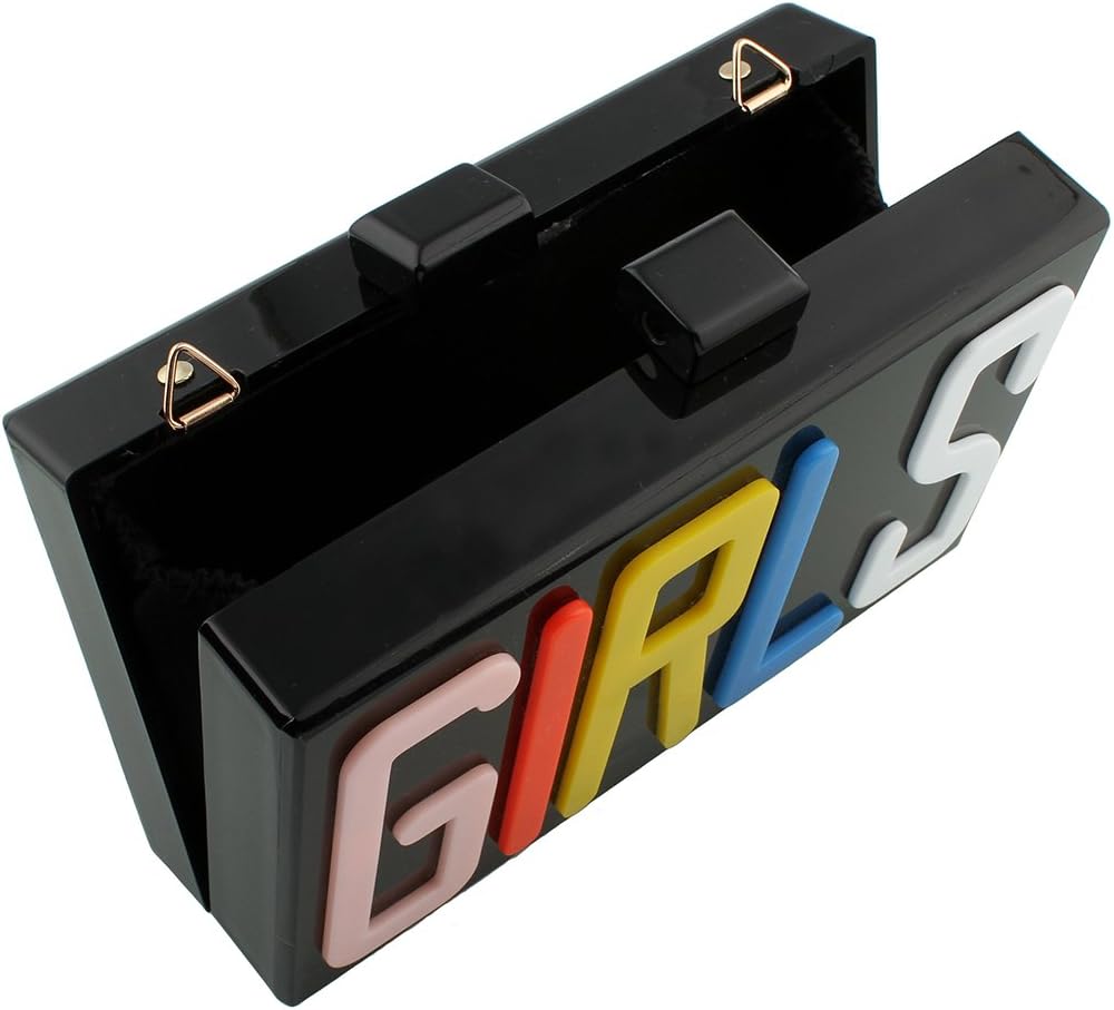 Women’s Rectangular Acrylic Lucite GIRLS Evening Bag Party Clutch Handbag, Black