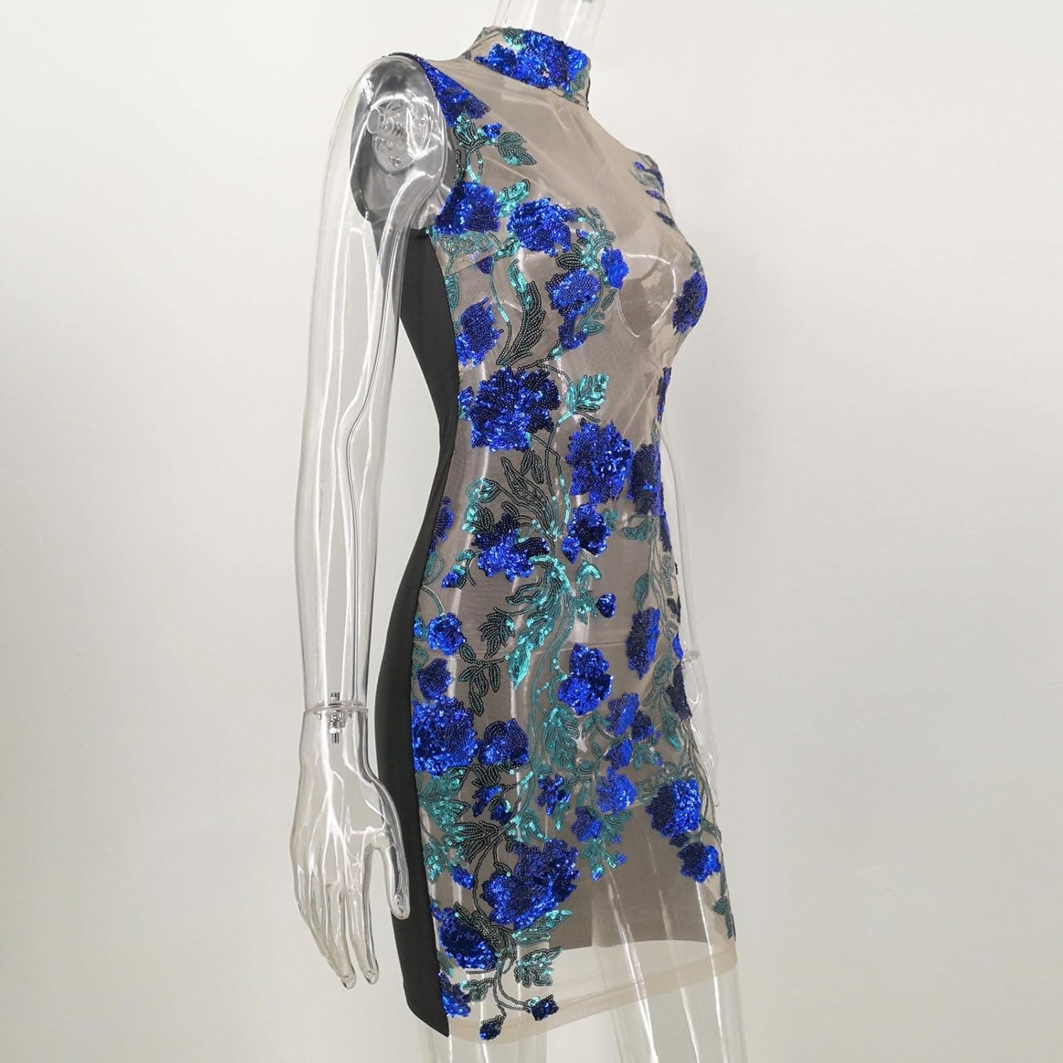 RAZOJESS Womens Sexy Sleeveless Screen Sequin Dress Nightclub Dance Dress Elegant Ladies Dresses