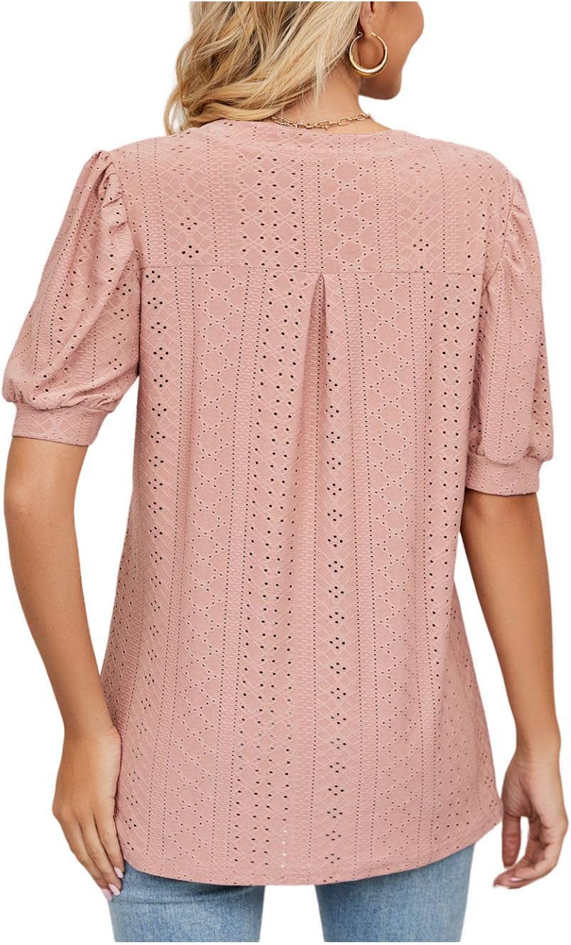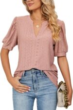 CiCiBird Womens Dressy Casual Shirt Summer Work Blouses Tie Front Puff Short Sleeve Tops