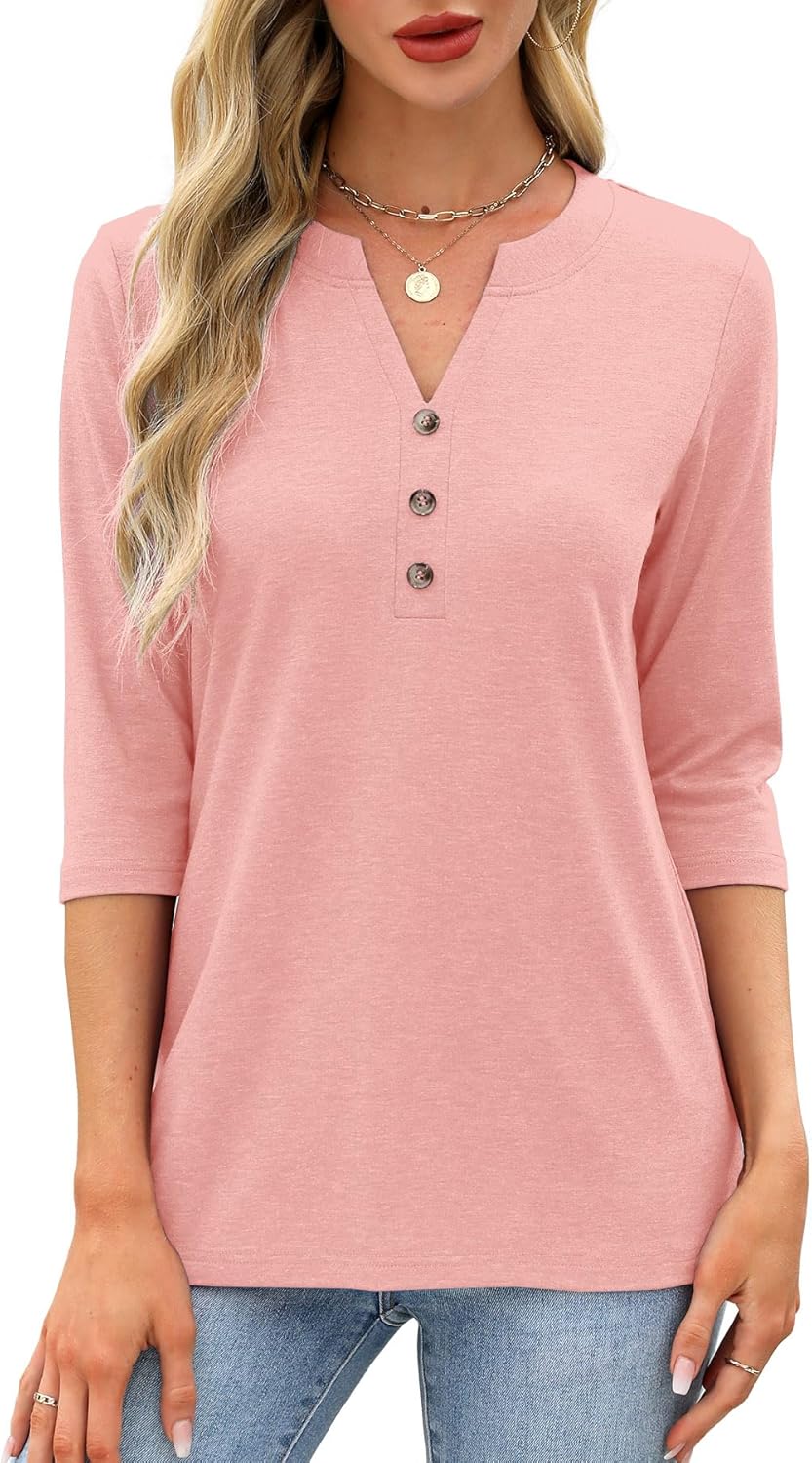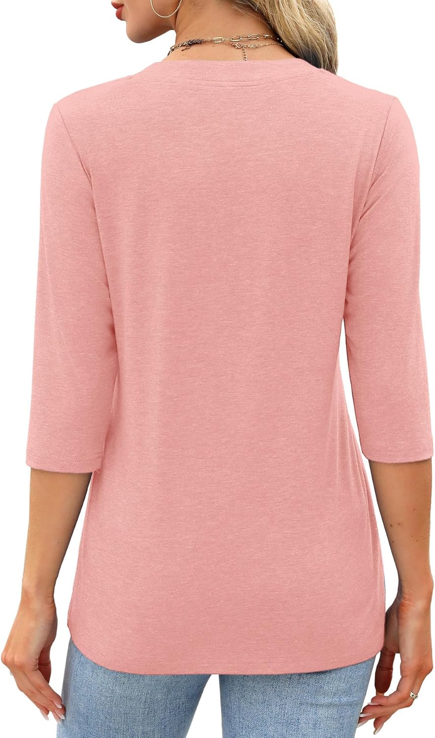 Womens Tops 3/4 Sleeve V Neck Shirts Dressy Casual Tunic Blouses Summer Tees