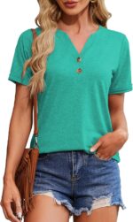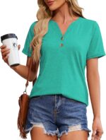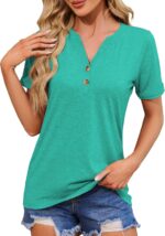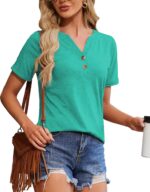 Womens Tops Trendy V Neck Button Down Short Sleeve Tshirts Business Casual Basic Tee Loose Fit