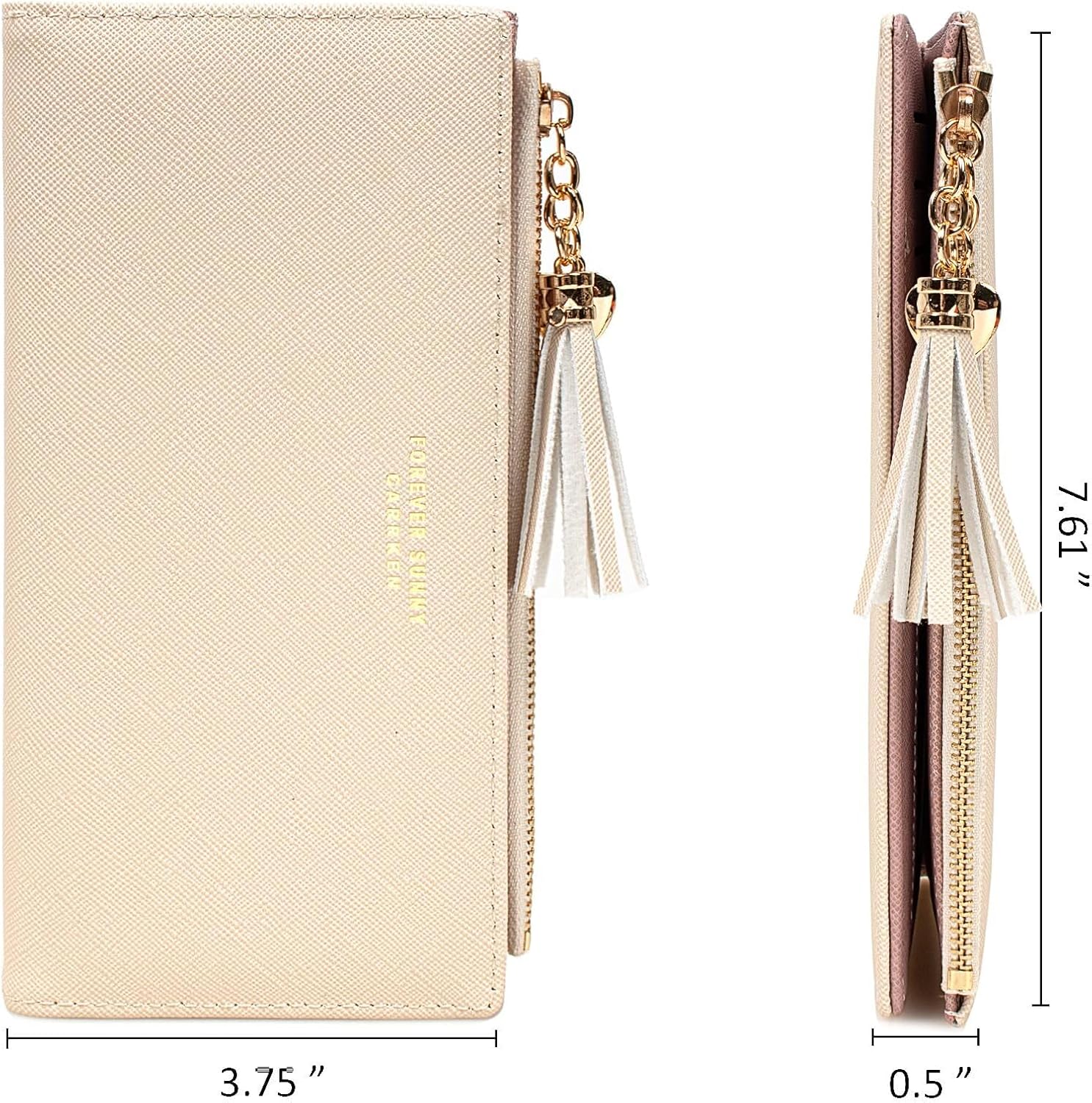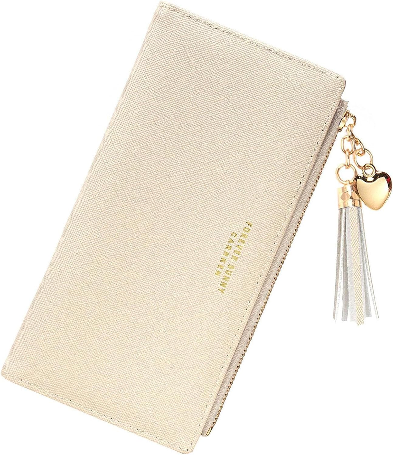Home Bags & Accessories Wallets Womens Wallet Cute Elegant Long Slim Card Holder Case Minimalist Coin Purse Thin Tassels Zip Clutch Wallets for Girls Ladies, Beige, L, Contemporary