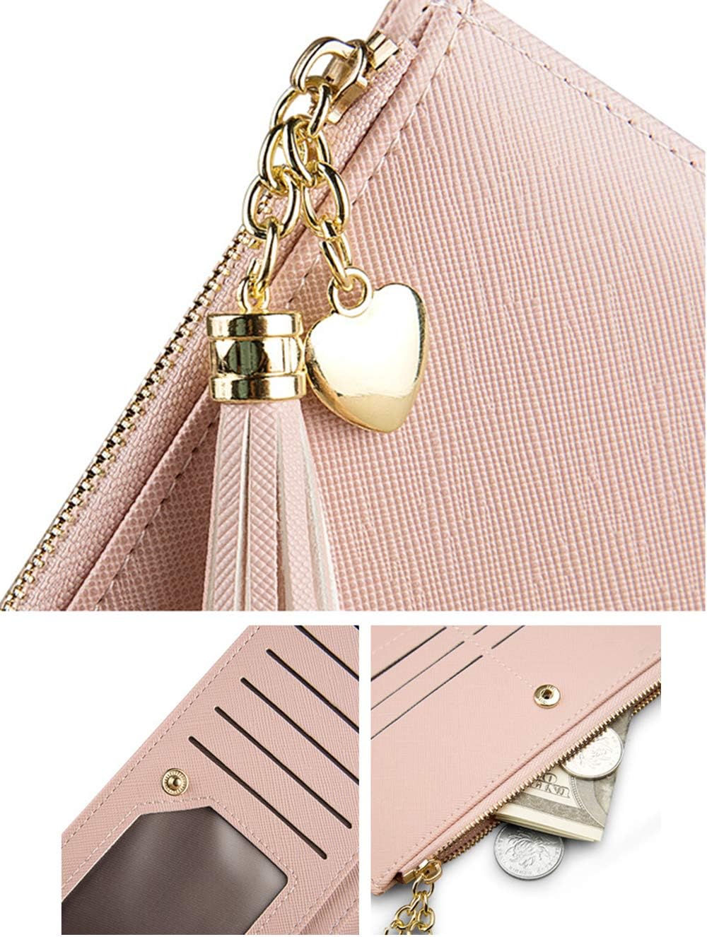 Womens Wallet Cute Elegant Long Slim Card Holder Case Minimalist Coin Purse Thin Tassels Zip Clutch Wallets for Girls Ladies, Blue, L, Minimalist