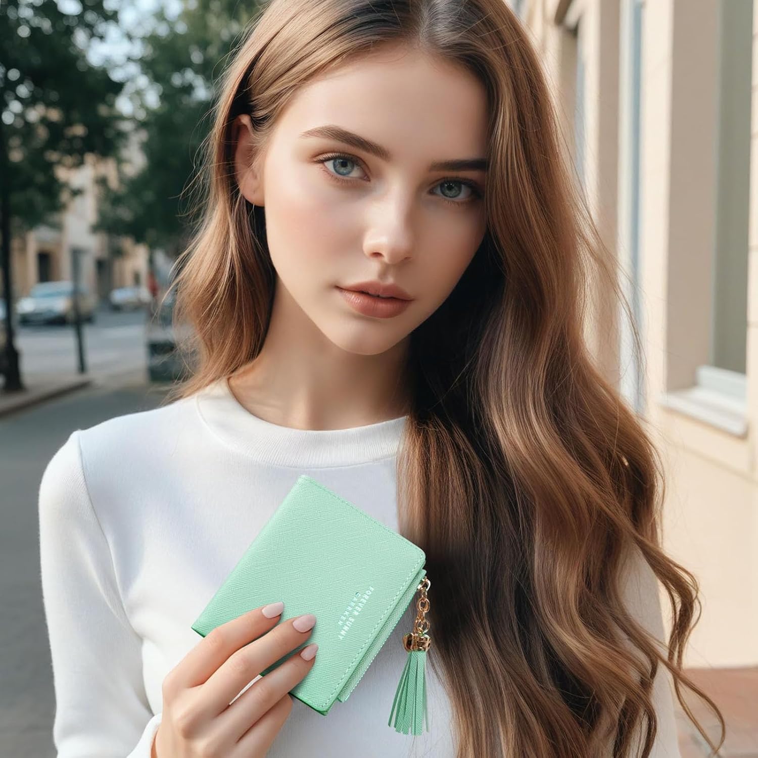 Womens Wallet Cute Elegant Long Slim Card Holder Case Minimalist Coin Purse Thin Tassels Zip Clutch Wallets for Girls Ladies, Z-Green, L, Cute