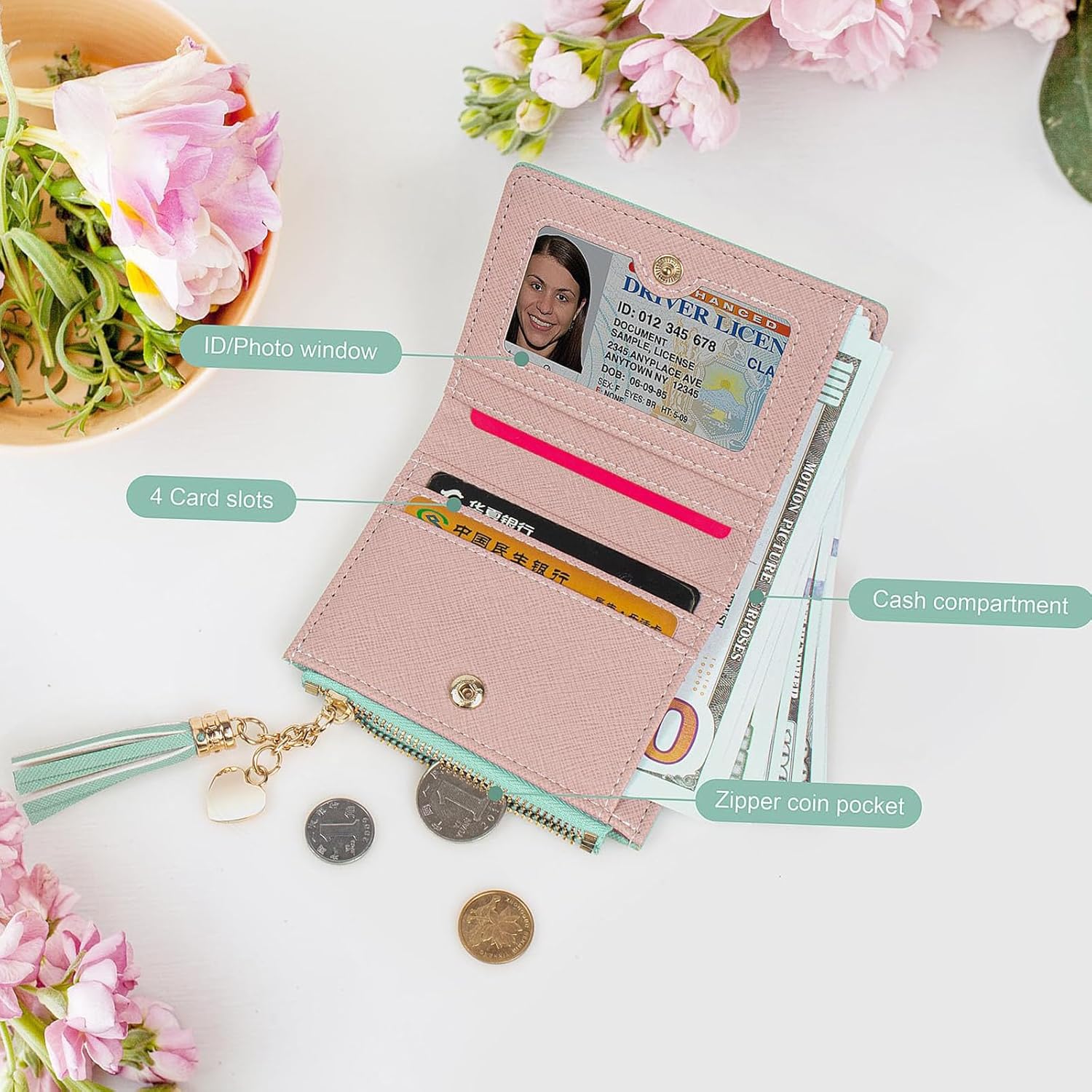 ✅【Practical & Functional】 You will see 5 practical card slots when you unfold the purse, your ID card, credit/debit cards, vip cards and other cards can be easily stored. You can take some bills/changes in the cash compartment and some coins in the zipper pocket. So good small purse it is