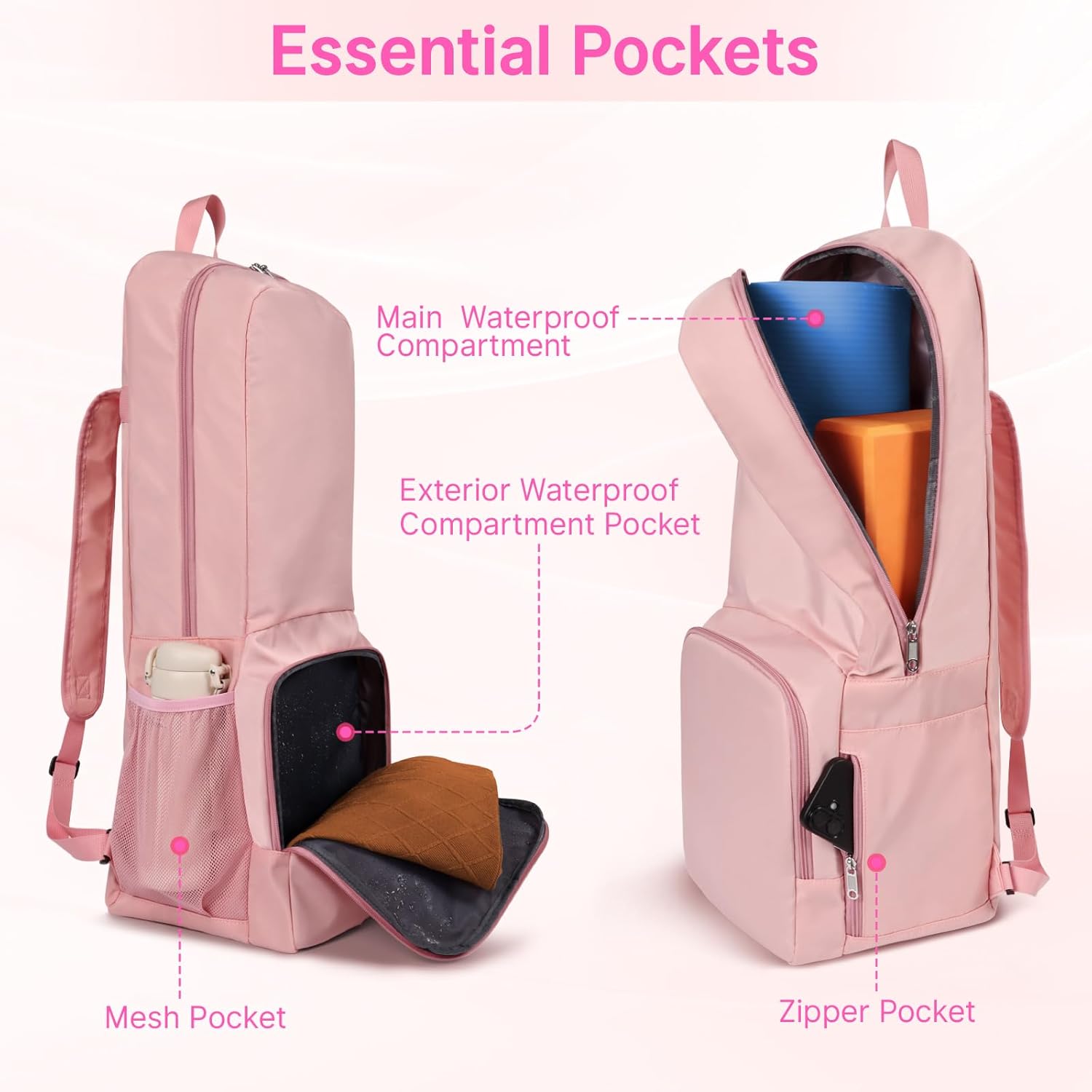 Durable Fabric: Made from 600D Oxford fabric for water-resistant and easy to clean. Ensures the yoga accessory stays dry on rainy days, and sturdy enough for workouts and yoga exercise trips