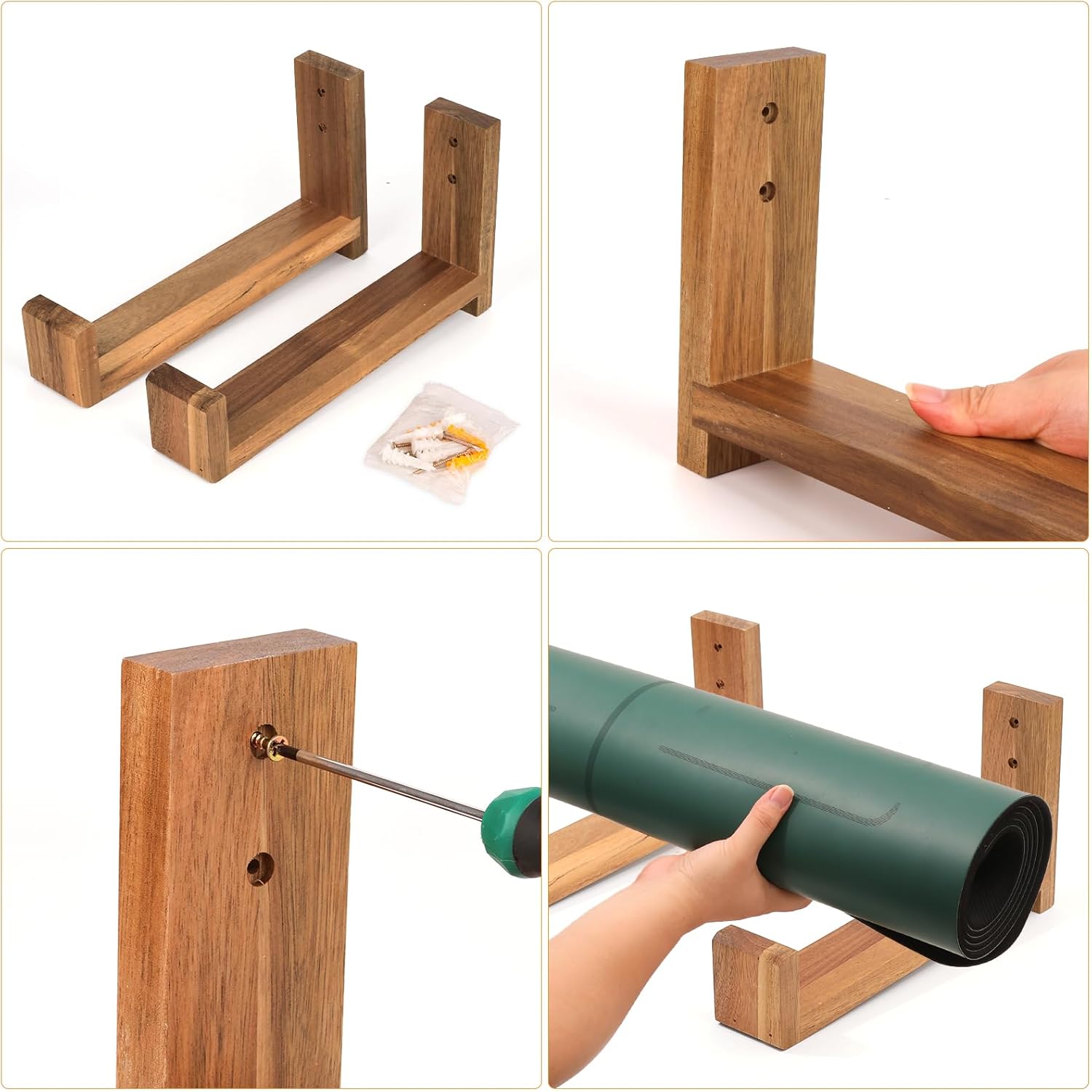 Yoga Mat Holder Wall Mount Yoga Mat Storage Rack,Wall Shelf Organizer, Foam Roller Wall Hooks, Hold 3 yoga mats, Fitness Gear Organizer By Wood