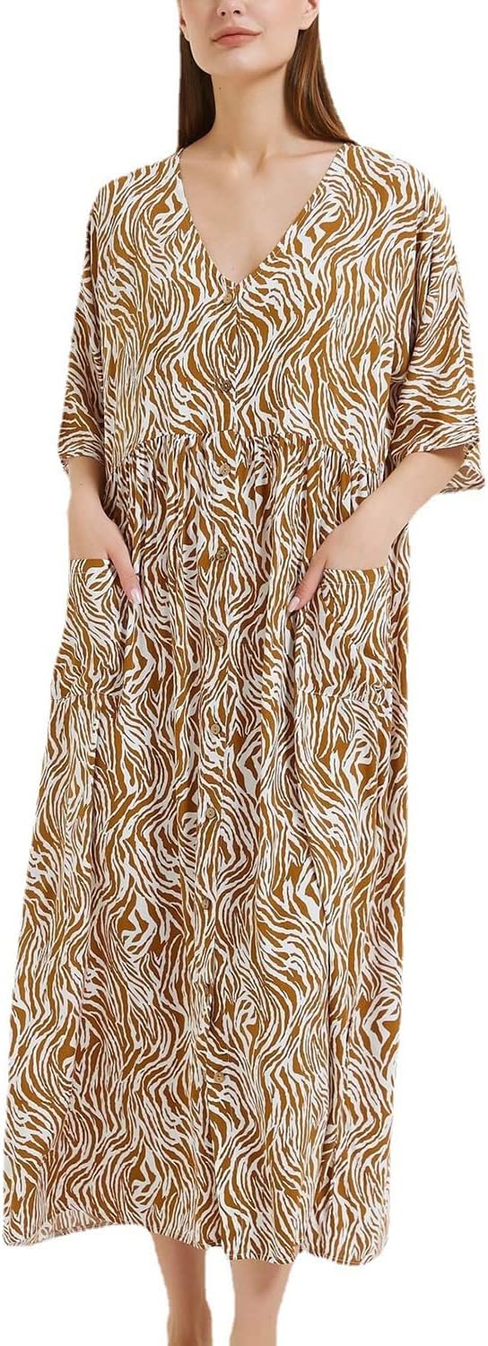 Beach Dress; Elegant Home Wear; Skin-friendly Sleep Wear; Bohemian Floral Dress; Boho Floral Printed; Soft Skin Fabric