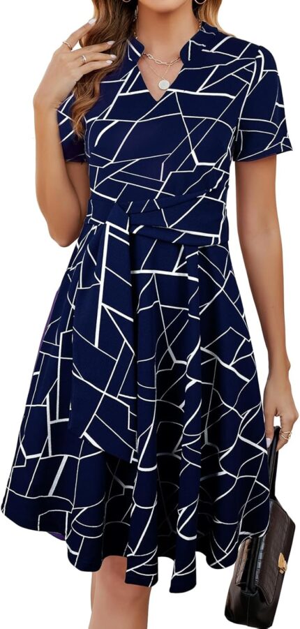 Urban CoCo Women’s Floral Print Short Sleeve Flared Midi Dress