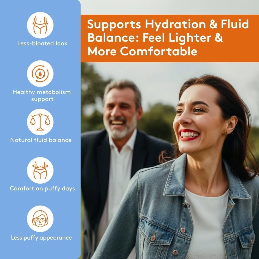 Premium dietary supplement will flush the excess water away helping with bloating | Excessive amounts of salt in food, gravity, variations in hormonal levels during menstrual periods or at menopause , contraceptive administration, certain vitamin deficiency (B1) may lead to excessive water retention