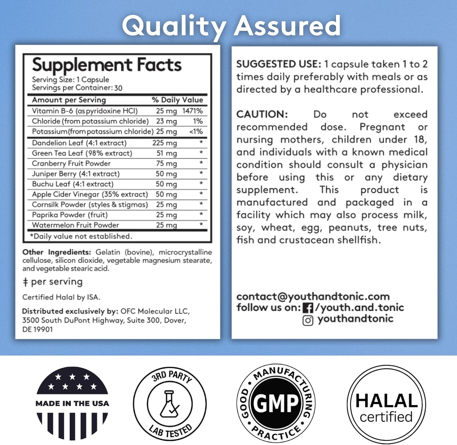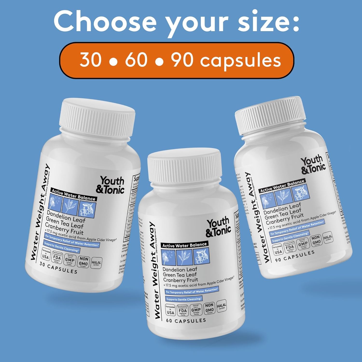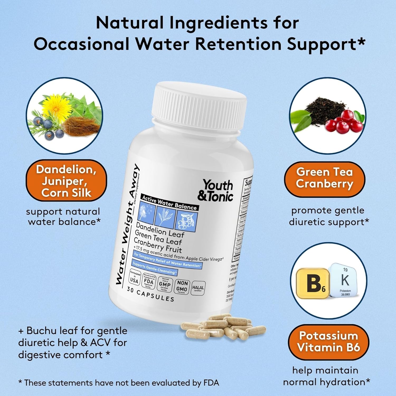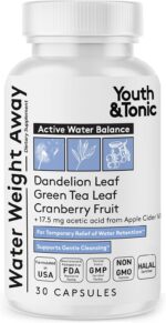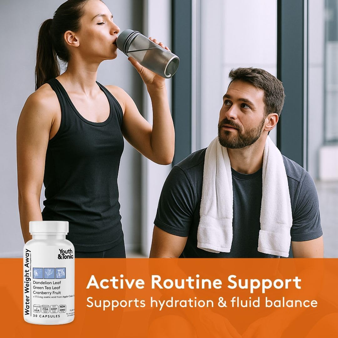 Youth & Tonic Water Weight Away to Relief Swelling & Belly Bloat to Reduce Waistline. Natural Diuretic Supplement Pills for Water Retention Loss & Cleanse Detox Support for Women & Men 30 Capsules