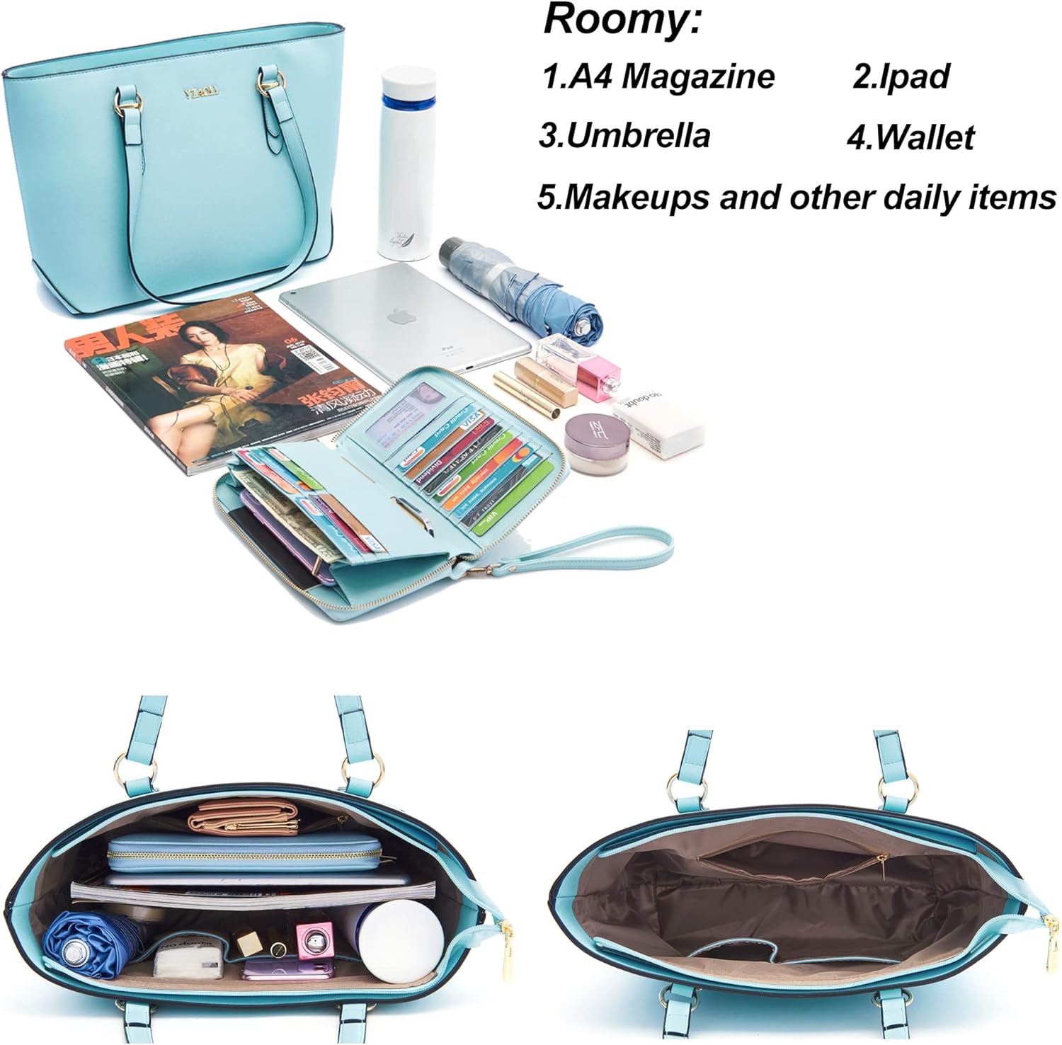 YZAOLL Purses for Women Faux Leather Medium Large Tote Satchel Shoulder Purse Handbag Wallet set