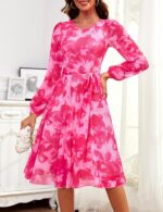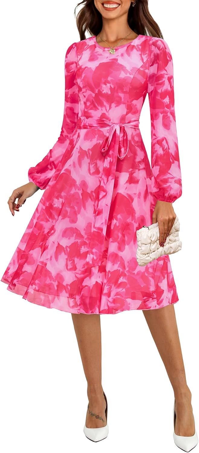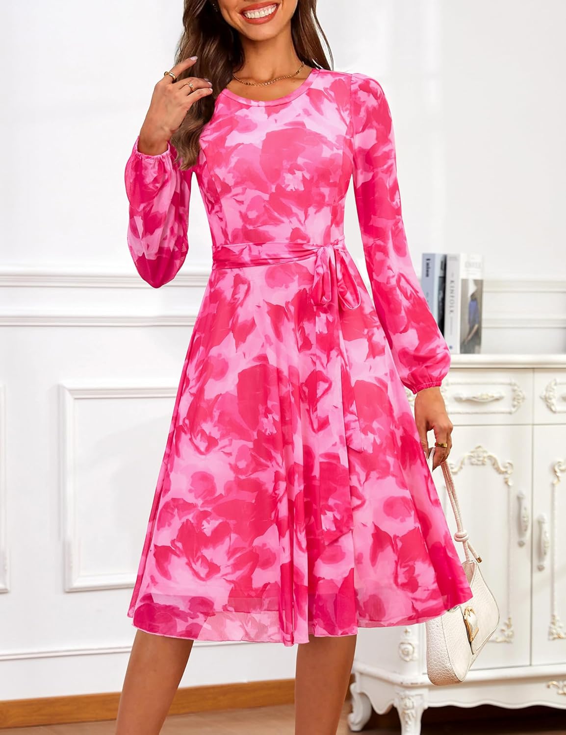 Home Beauty & Personal Care makeup Zattcas Women’s 2025 Fall Mesh Long Sleeve Floral Midi Dress Crew Neck A Line Flowy Cocktail Party Wedding Guest Dress