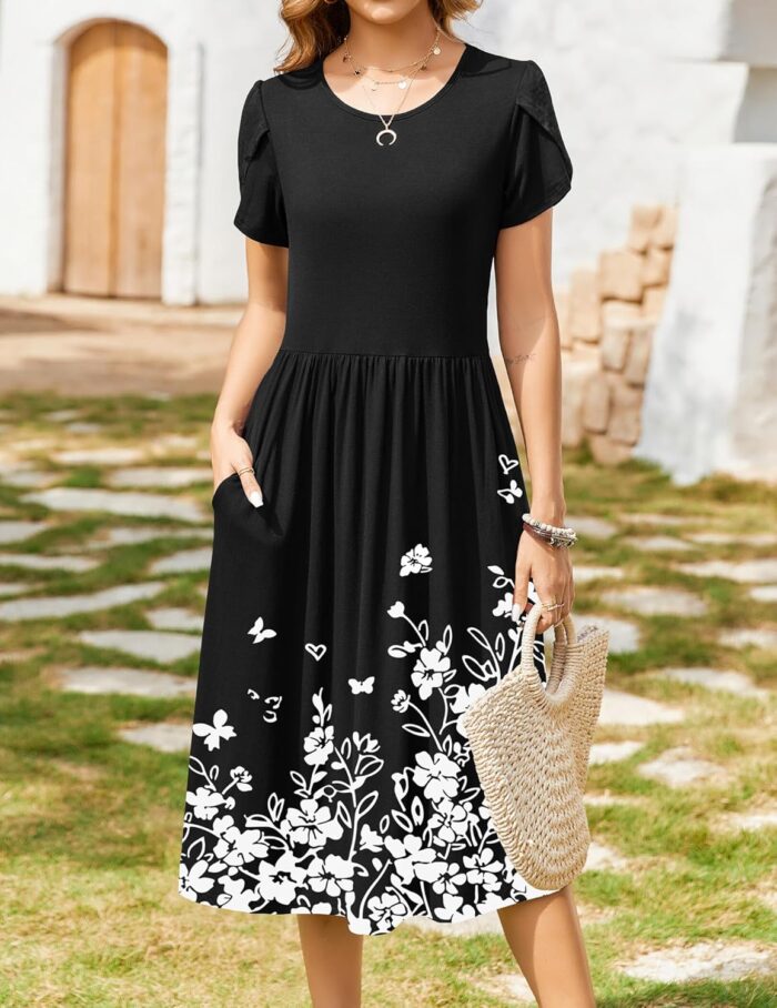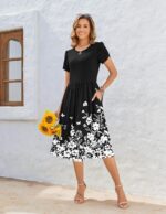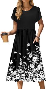 Zeagoo Womens Summer Short Sleeve Dress Floral Dress Swing Dress With Pockets