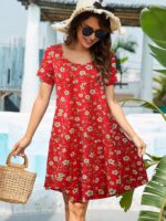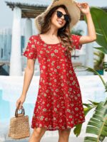 Urban CoCo Women’s Floral Print Short Sleeve Flared Midi Dress