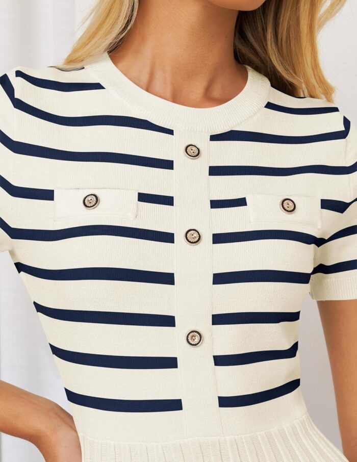 Office Wear: Dress it up with a statement necklace and heels for a chic office look. The classic stripe pattern adds a touch of sophistication to your work wardrobe.