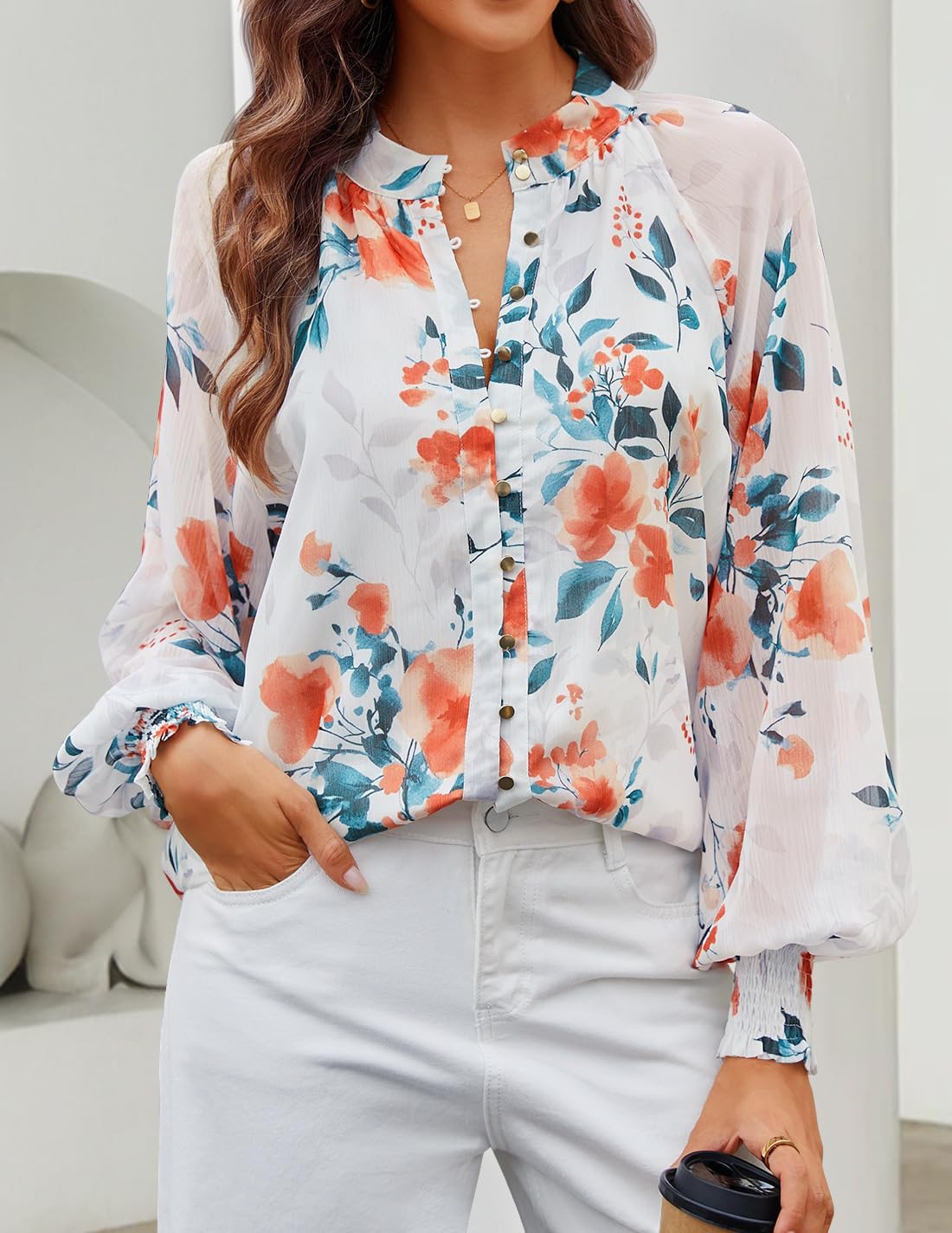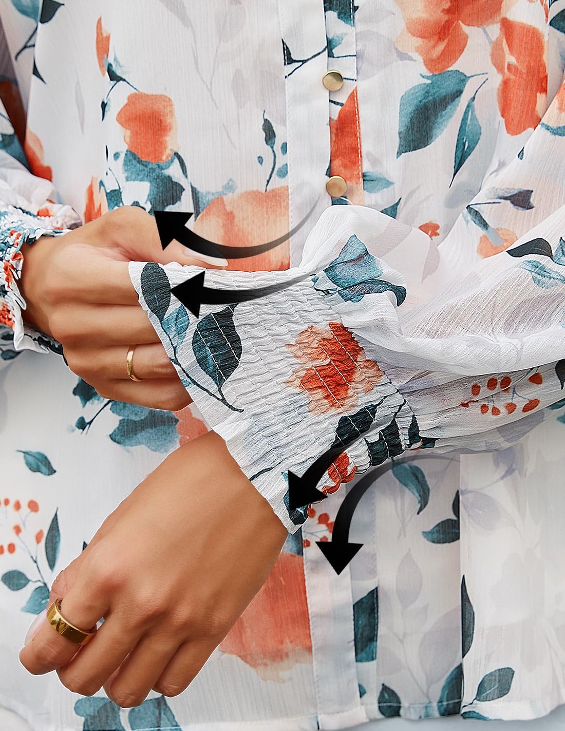 Women’s Fall Tops collection for more casual long sleeve shirts, or add some romance to your wardrobe with our Floral Boho BlousesPrint Lantern Long Sleeve Spring Loose Blouses Shirts. Long sleeves with smocked cuffs to keep you cozy and stylish. The oversized fit allows for comfort and versatility, perfect for layering or wearing on its own. The floral print design brings a touch of boho to your wardrobe, making it perfect for any occasions. Our Boho Button Down Shirts made from soft and breathable chiffon fabric.