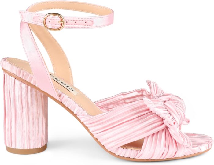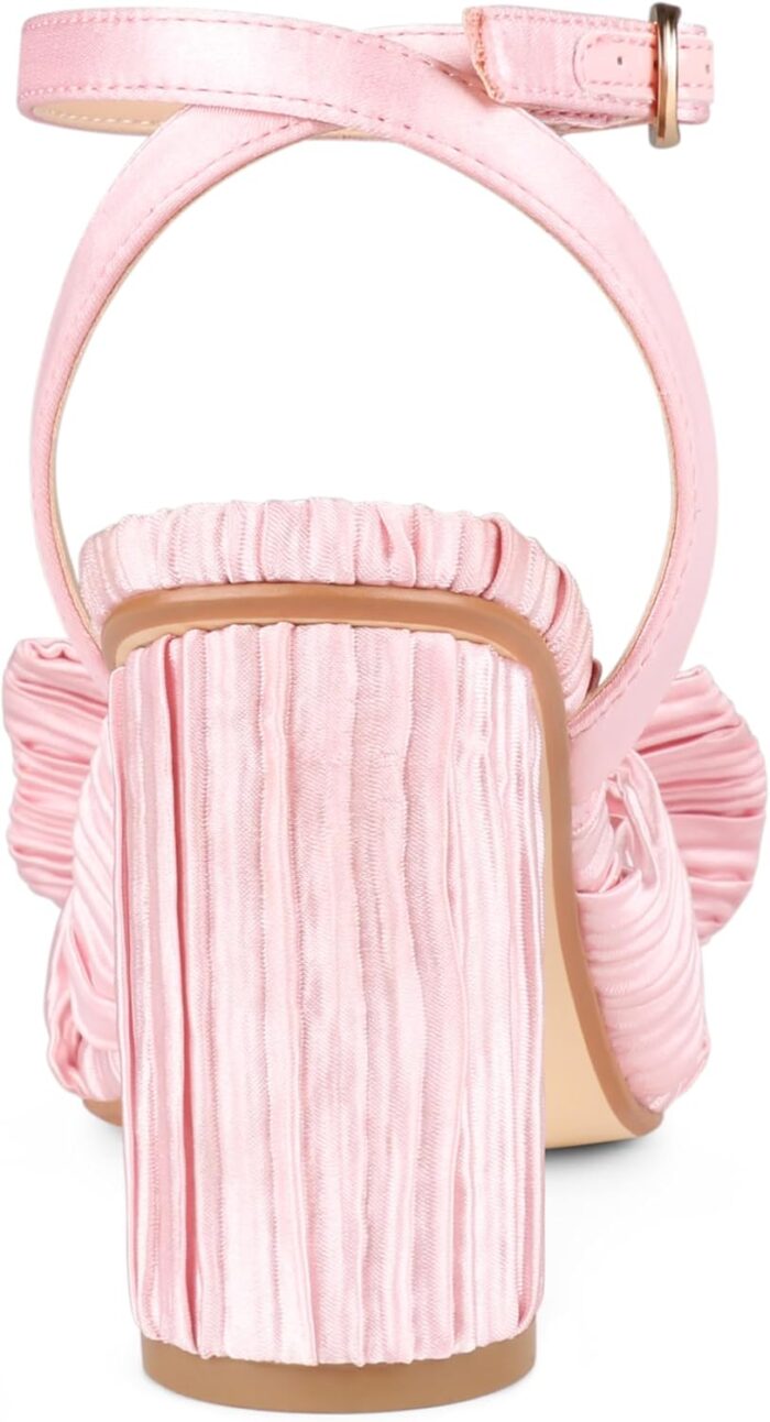 Zzheels Women’s Bowknot Wedding Shoes Bow Heels Open Toe Ankle Strap Chunky Sandals
